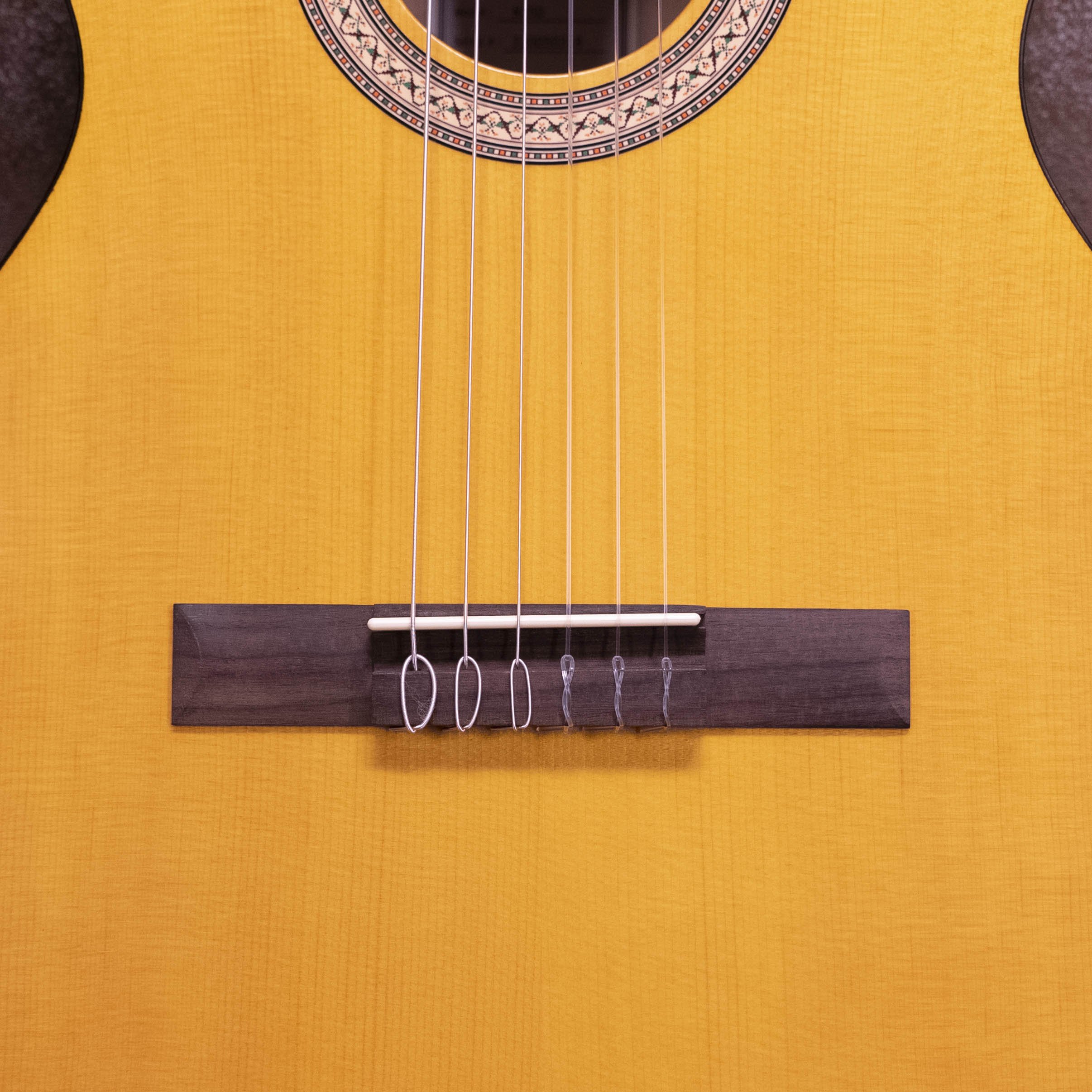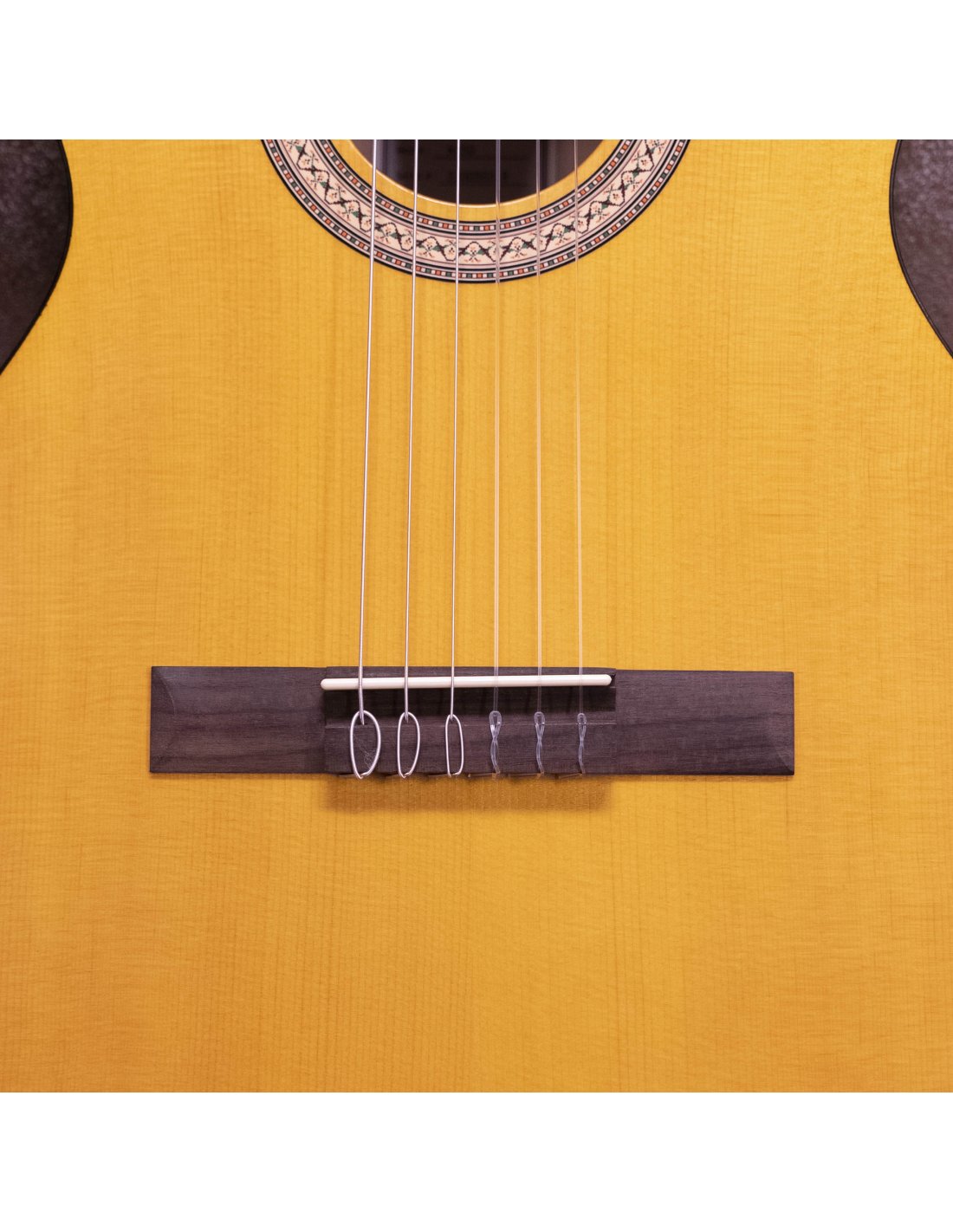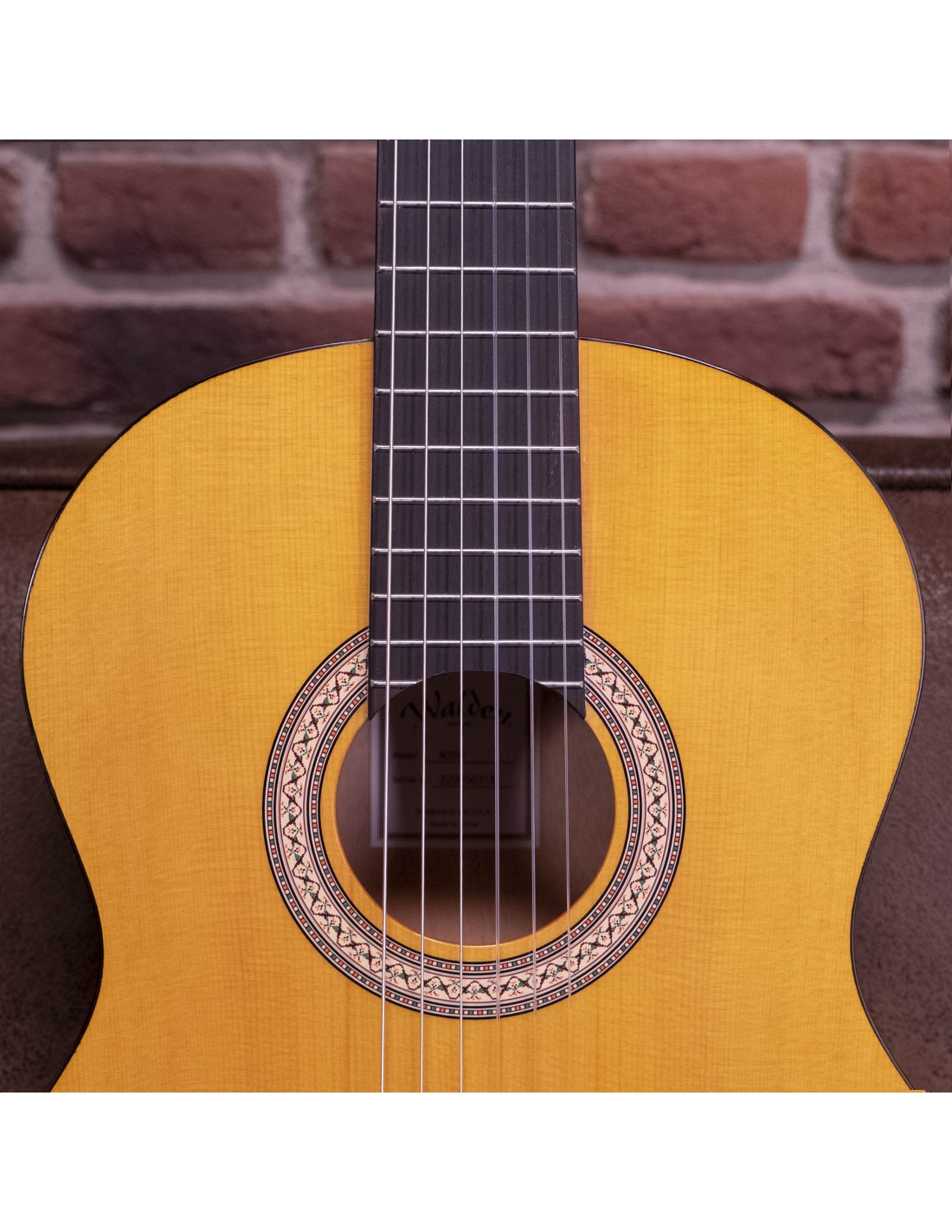'Standard 300 Series Classical Guitar Body: Classical Nylon Strings Top: Laminated Spruce Back and Strips: Laminated Mahogany Neck: Mahogany, two-way truss rod Keyboard and Bridge: Rosewood Nut and Saddle: Rosette Plastic: Adhesive Binding: ABS Keys: Nickel/Perloide Finish: Water-based Gloss Nut Width: 52 cm (2.06") Shoulder Width: 28.58 cm (11.25") Waist: 24.13 cm (9.5") Hips Width: 37.47 cm (14.75") Depth: 9.84 cm (3.84 cm) 75") Body Length: 48, 85 cm (19.23") Scale Length: 65 cm (25.6") Strings Hannabach Coated Case WALDEN Gigbag '