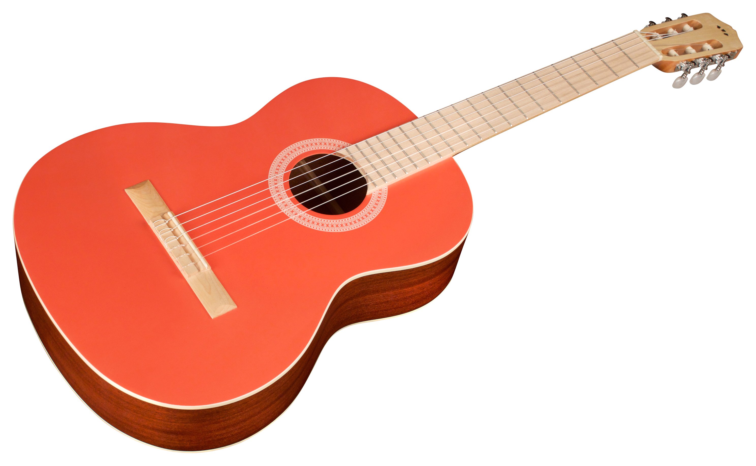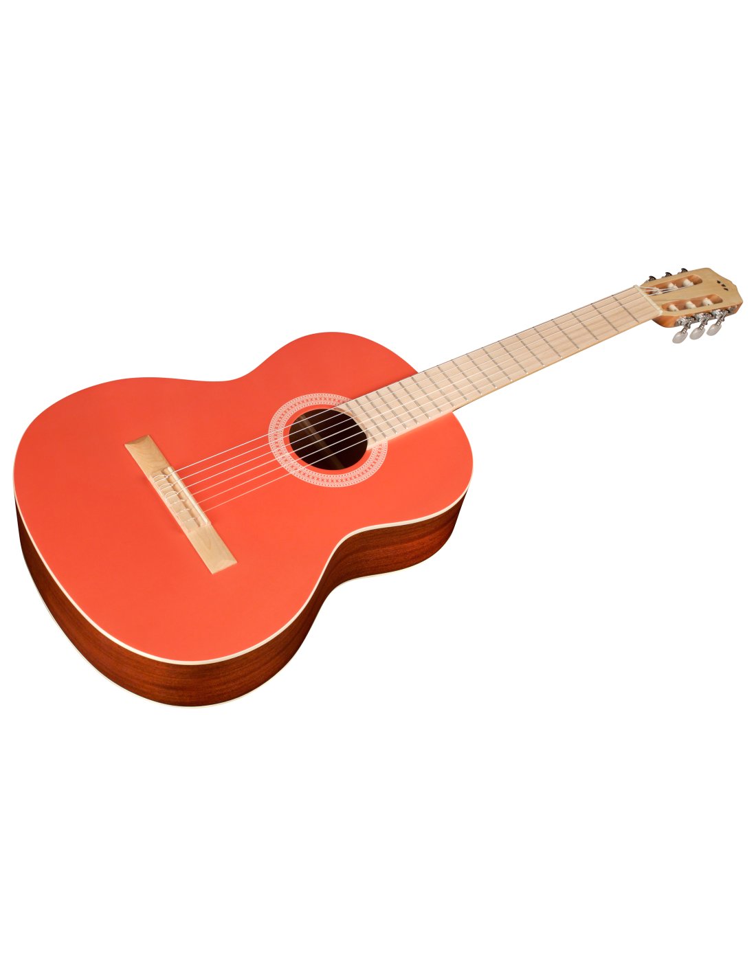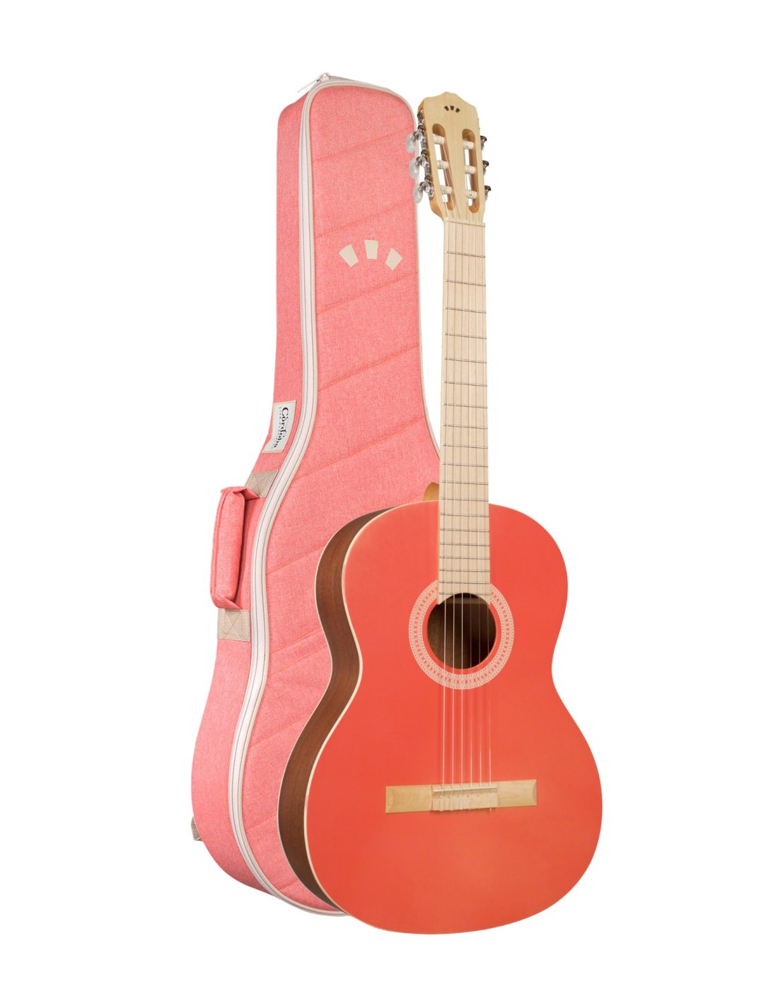 'Bring your color music to life with the Protégé C1 Matiz! A new interpretation of the traditional aesthetics of the nylon string guitar, the Matiz series combines maple accents and traditional woods in 4 attractive colors: Aqua, Coral, Pale Sky and Classic Blue. The spruce top and mahogany back and sides provide the projection and warmth associated with a nylon string guitar, while the maple nut, bridge and fretboard give the C1 Matiz a completely new look with a lively tonal response. The satin polyurethane finish provides a layer of protection against nicks and scratches, while the “ghost” rosette, designed based on our traditional wooden rosette, allows the attractive colored tops of the C1 Matiz to shine and take center stage. It includes a matching recycled nylon gig bag that will protect the instrument in a responsible and sustainable way. '