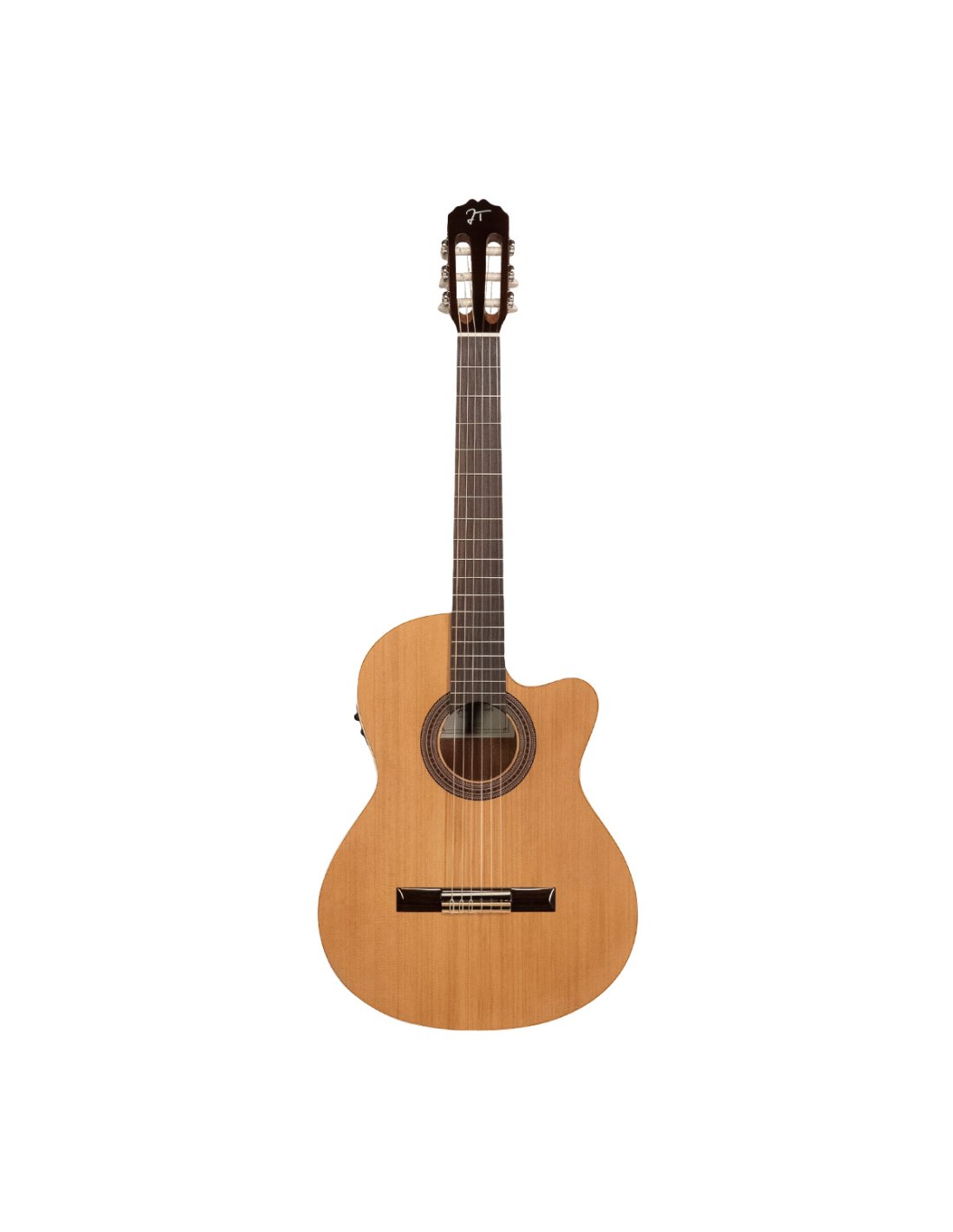 JTC-10CE: Electric classical guitar with cutaway. Solid cedar top. Mahogany sides and back. Mahogany handle Indian rosewood keyboard. 52mm bone nut. Nickel-plated mechanics. Maple binding in the top. 650 mm scale. Preamp Fishman classical II. Glossy finish