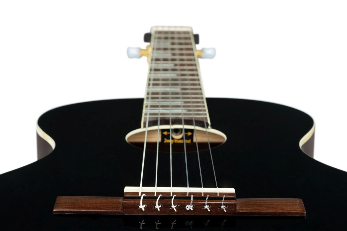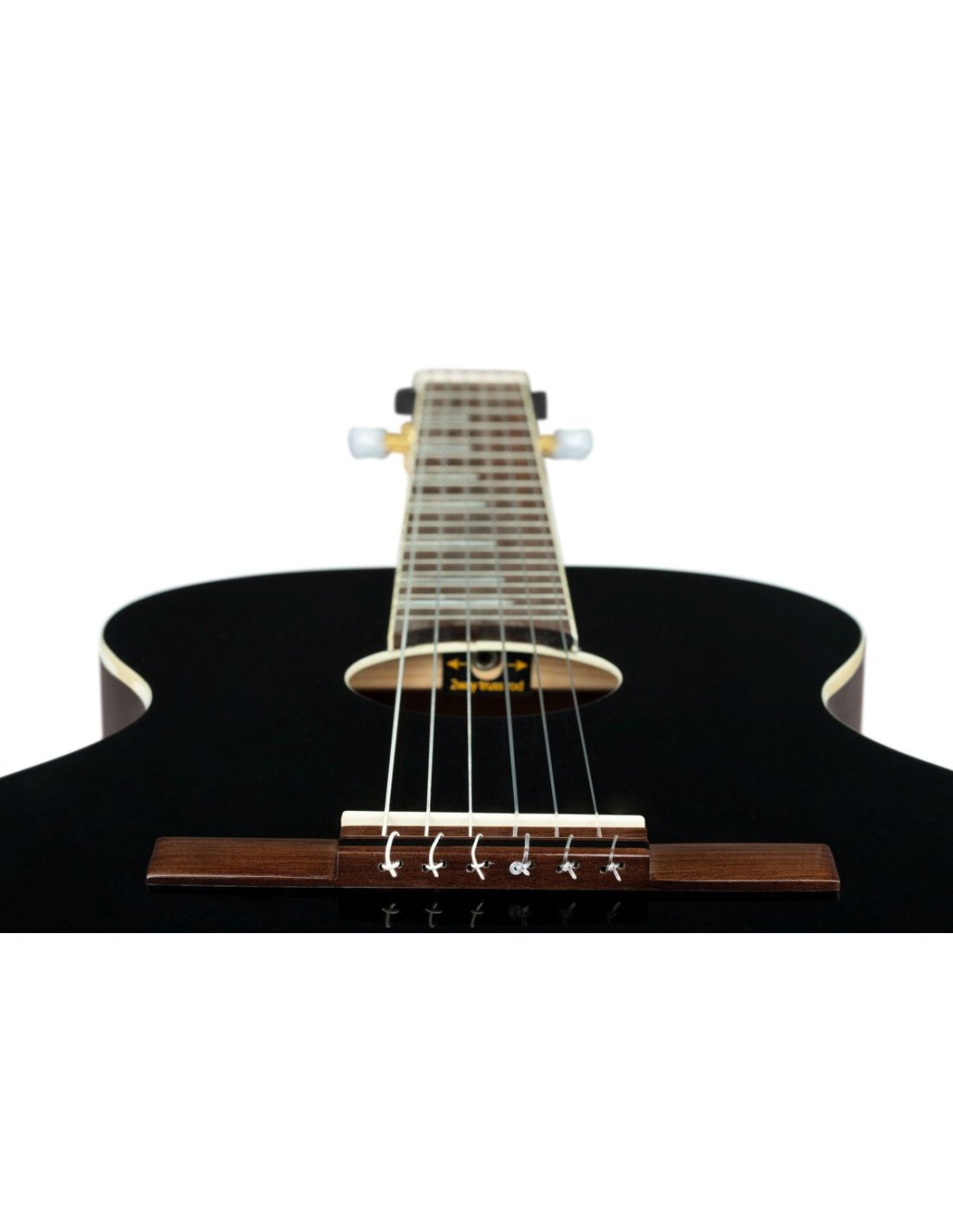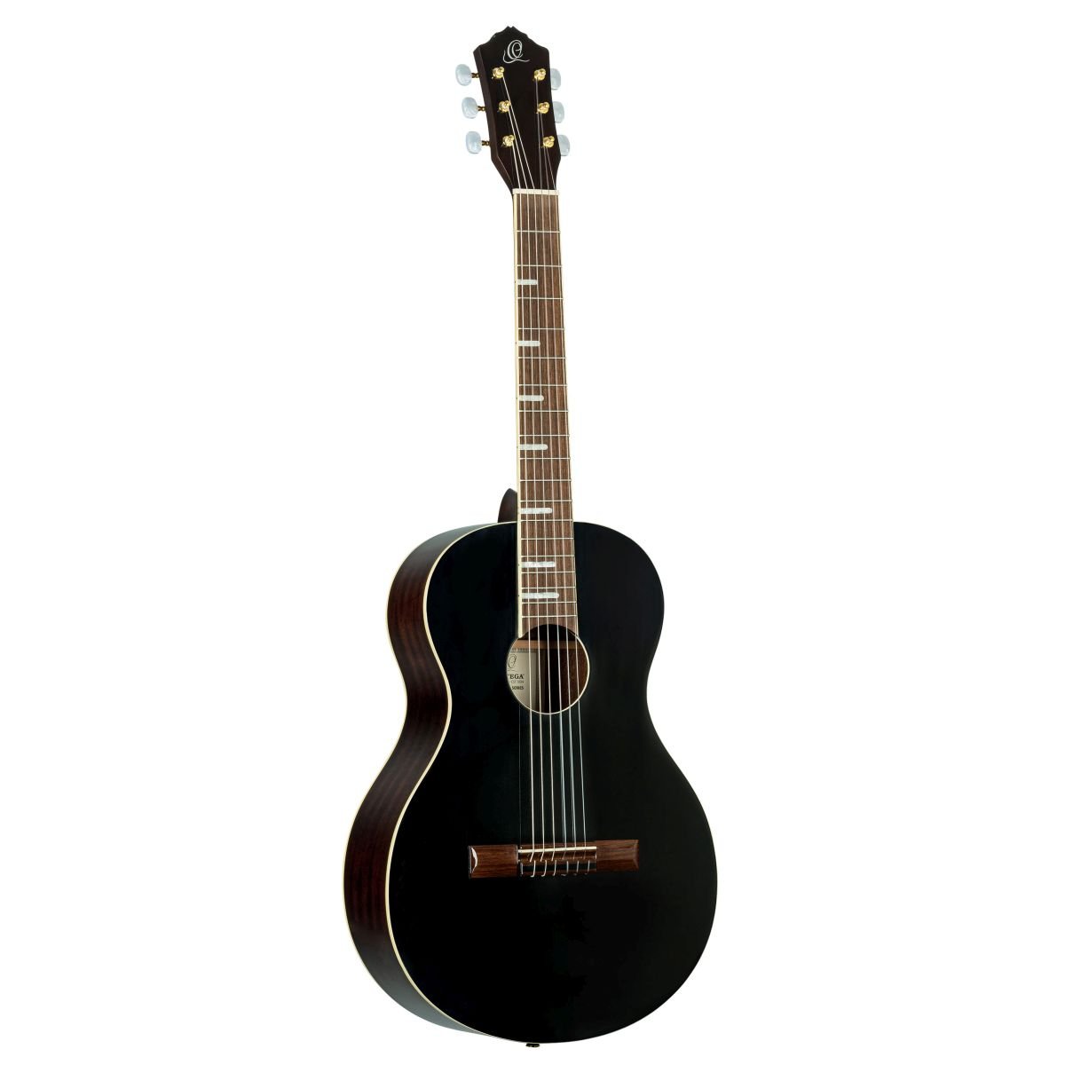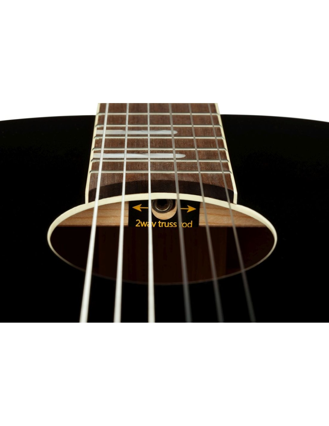 'The Ortega Guitars Ranger series is truly eye-catching thanks to its eye-catching glossy top. The colorful tops, available in black, ocean blue, t-red and platinum, beautifully complete the dark mahogany back and sides. The Ranger series by Ortega, the size of a salon, features a short staircase tree embellished with bar inlays. Each guitar also comes with a matching case for added convenience. Size: 4/4 - Living room. Nut width: 47 mm (1.85”). Scale: 630 mm (24.8”). Board: Spruce, black, glossy finish Back and sides: Mahogany, glossy Style: Satin Nato with dark tint Keyboard and bridge: Walnut headstock plating Mahogany binding: ABS upper and lower ivory Acoustic headstock Inlays on the white pearl keyboard Bridge: Ortega 12-hole trellis: 2-way Scale: Short 630 mm (24.80”) Nut width: 52 mm (2.05”) Matching carrying bag including ORTEGA2024'