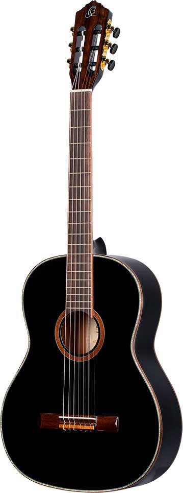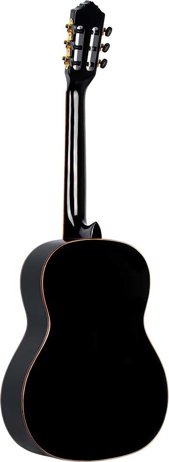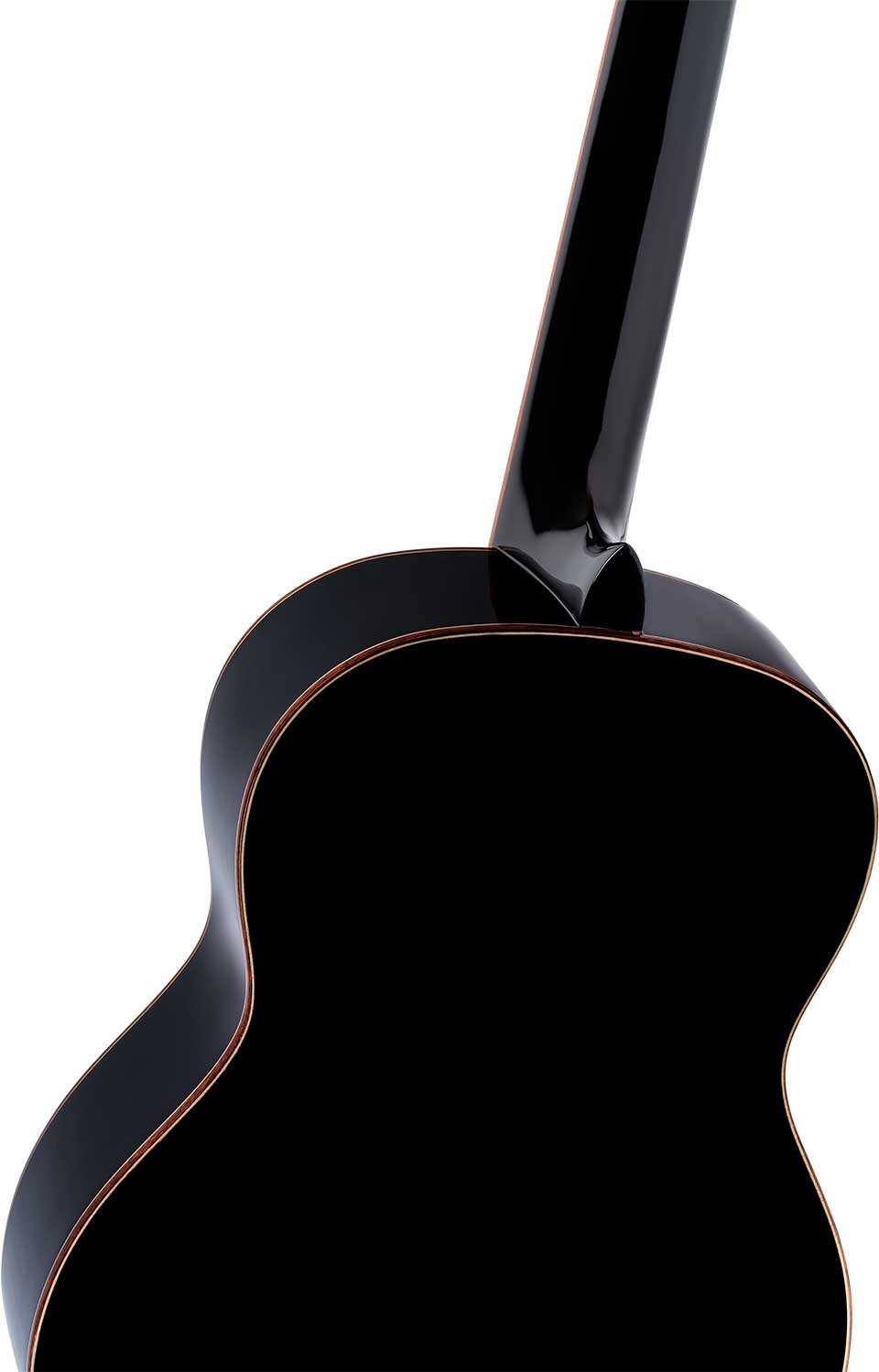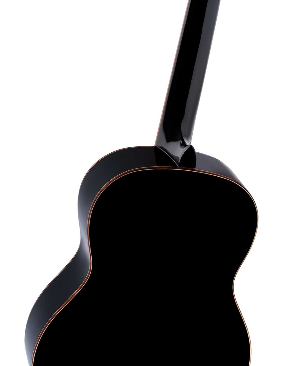 Family Series Classical Guitar. Laminated spruce top, back, sides and handle in mahogany. Adjustable core. Slim, narrower handle. Sonokelin keyboard Black finish. Deluxe case included.