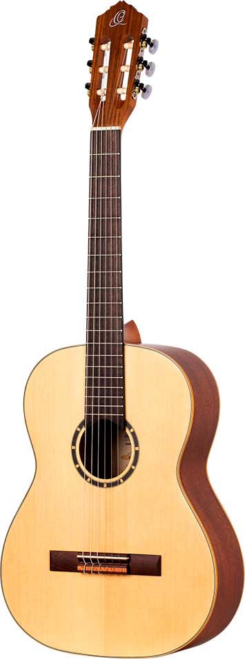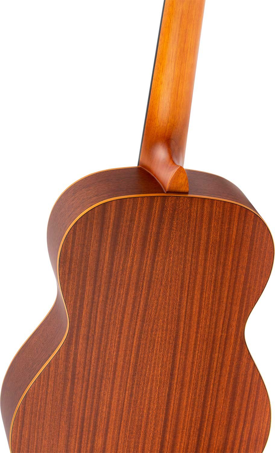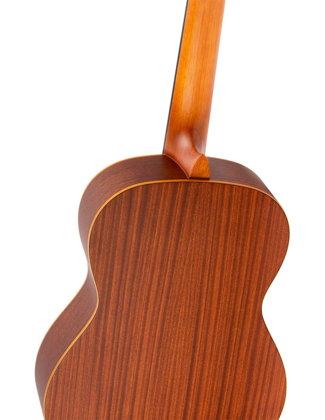 Family Series 7/8 Classical Guitar. Laminated spruce top, laminated mahogany bands and bottom. Satin finish Bag included.