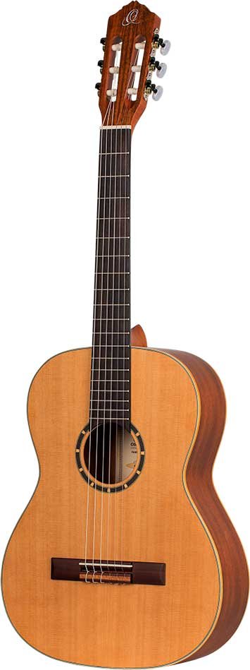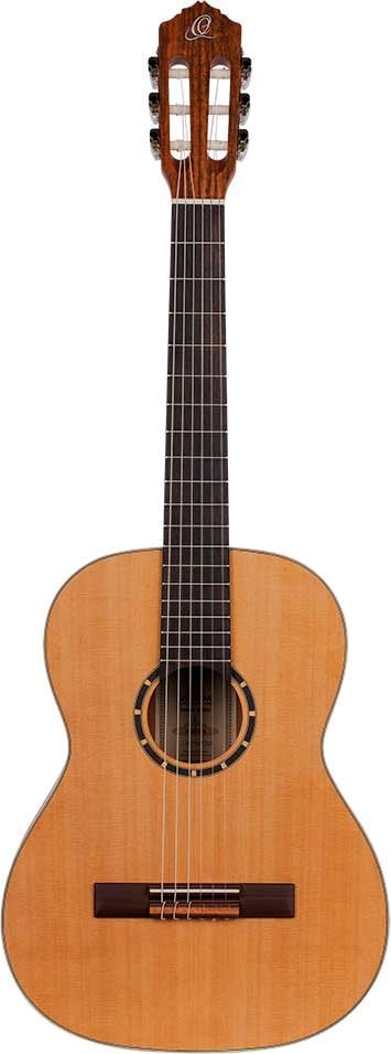 Family Series 7/8 Classical Guitar. Laminated cedar top, laminated mahogany bands and bottom. Satin finish Bag included.