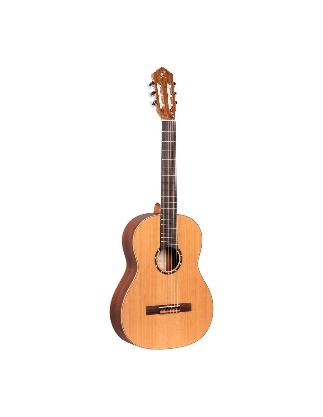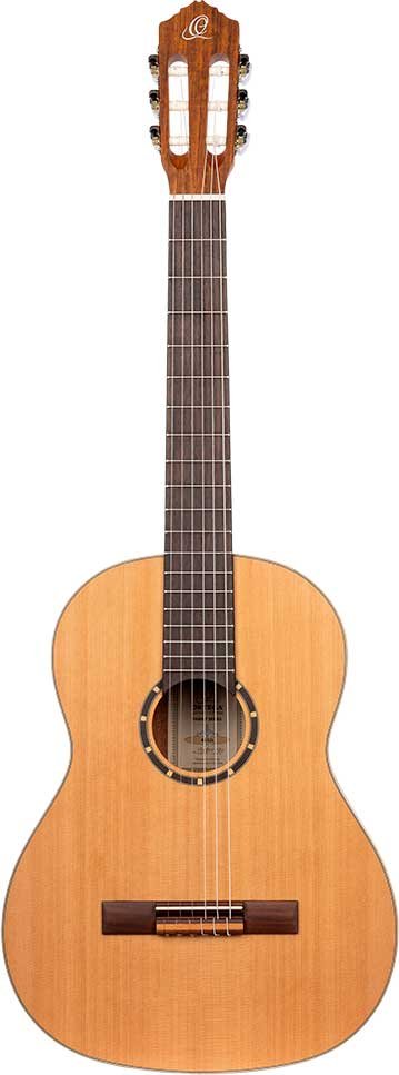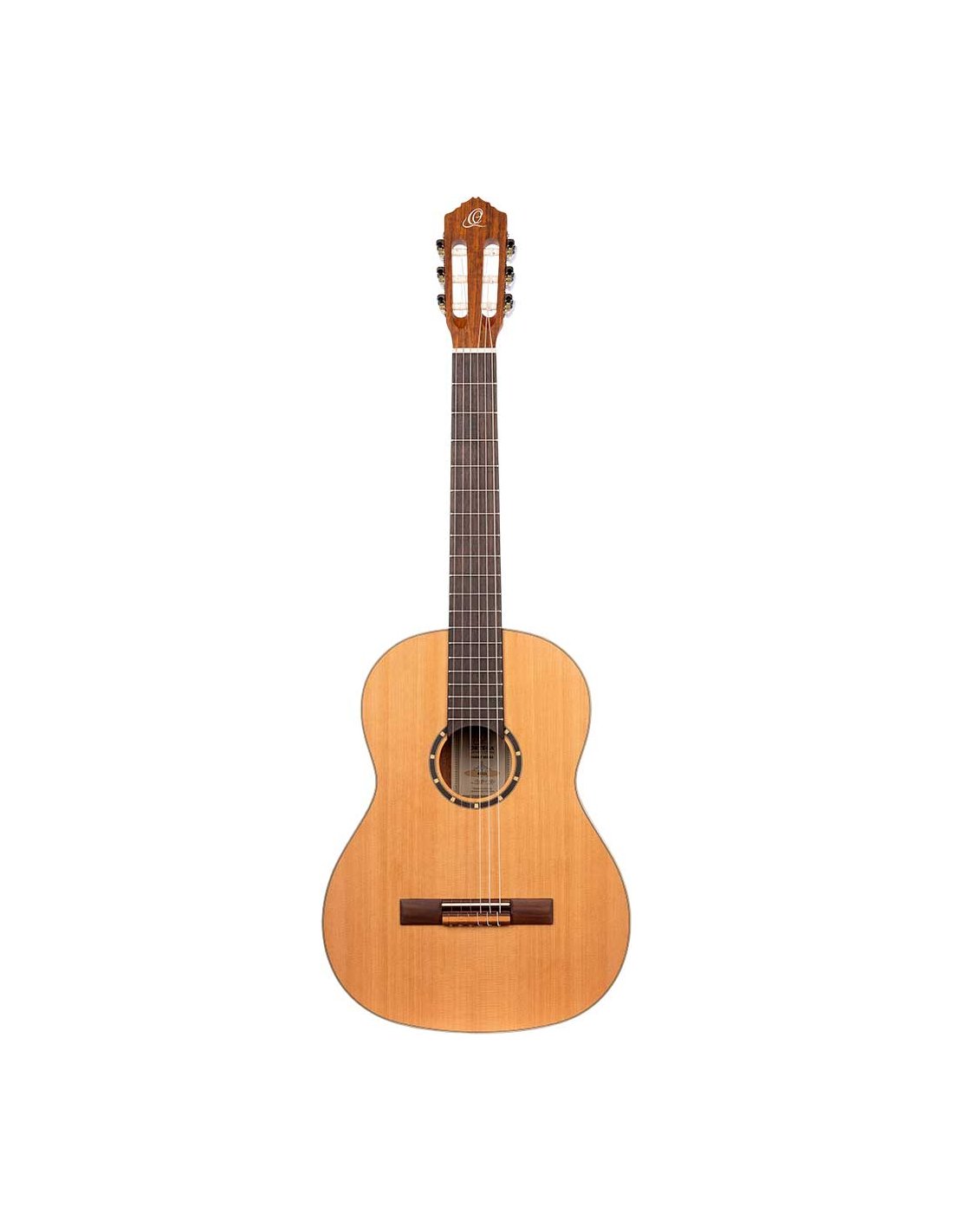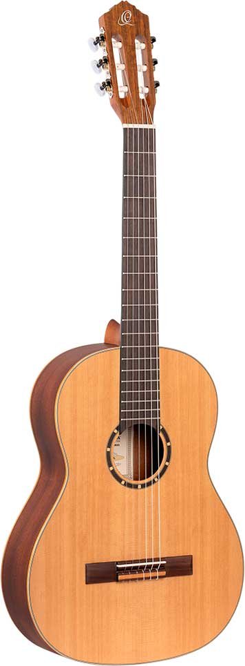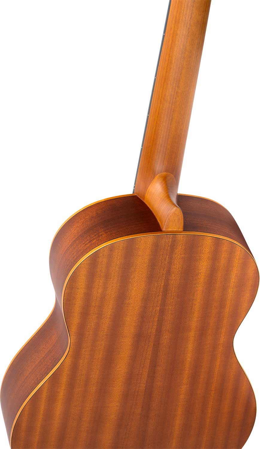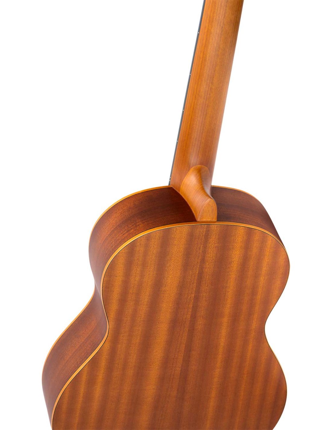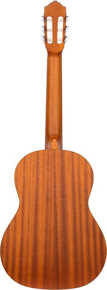 Family Series 4/4 left-handed classical guitar. Laminated cedar top, laminated mahogany bands and bottom. Satin finish Bag included.