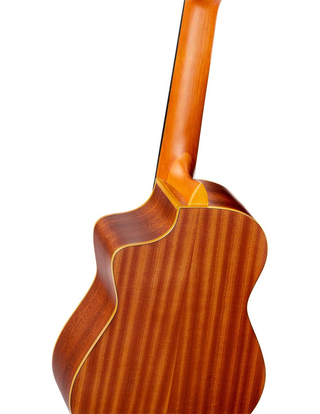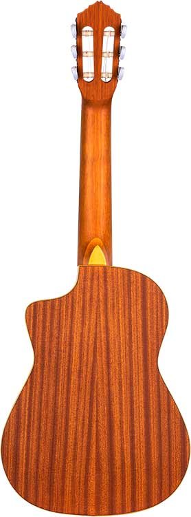 RQ38 Mexican-style deep body requinto. Solid Engelmann spruce top with natural satin finish. Circles and bottom in satin sapelli. 110 mm extra deep body. Okoumé handle with glossy satin finish. Walnut keyboard and bridge. Deluxe case included.