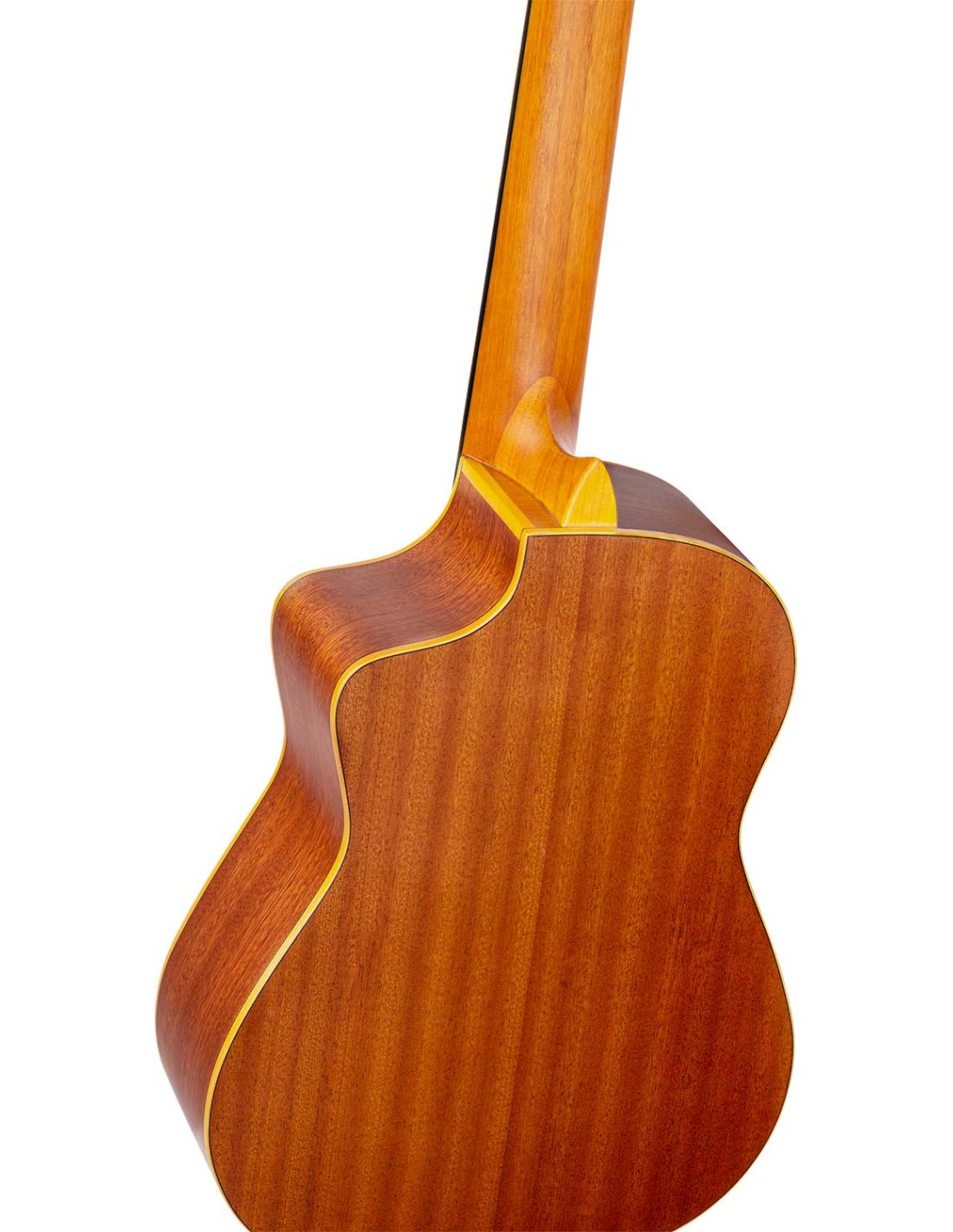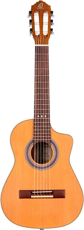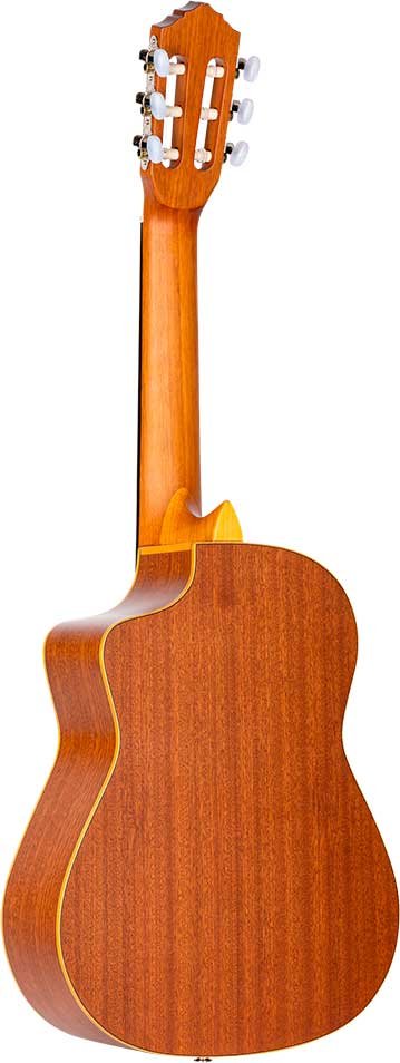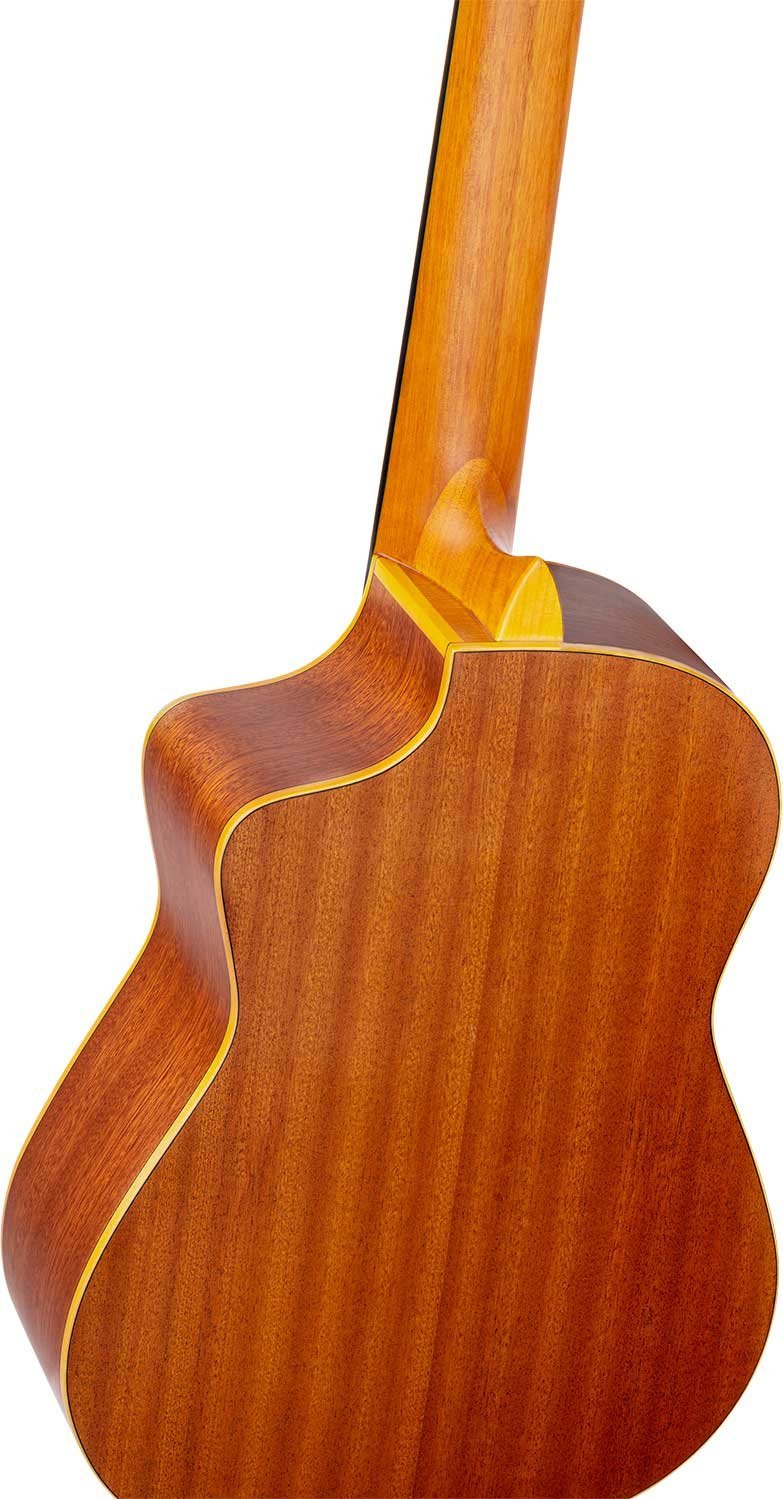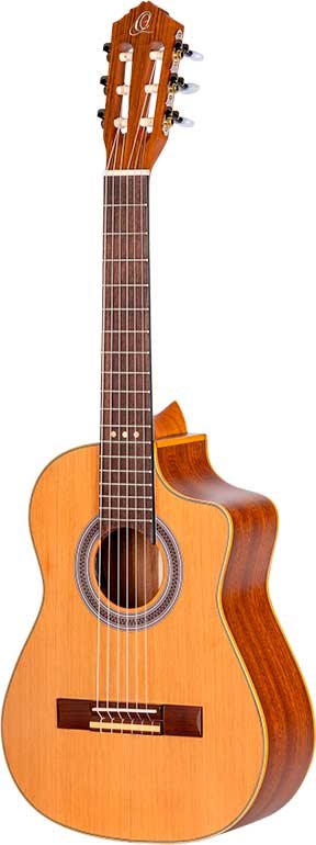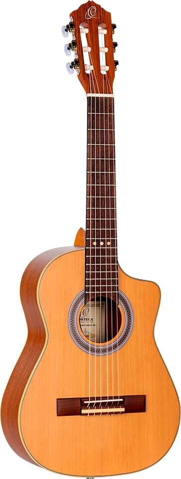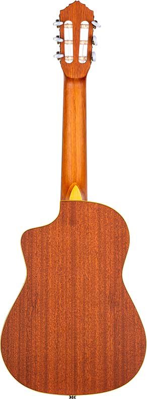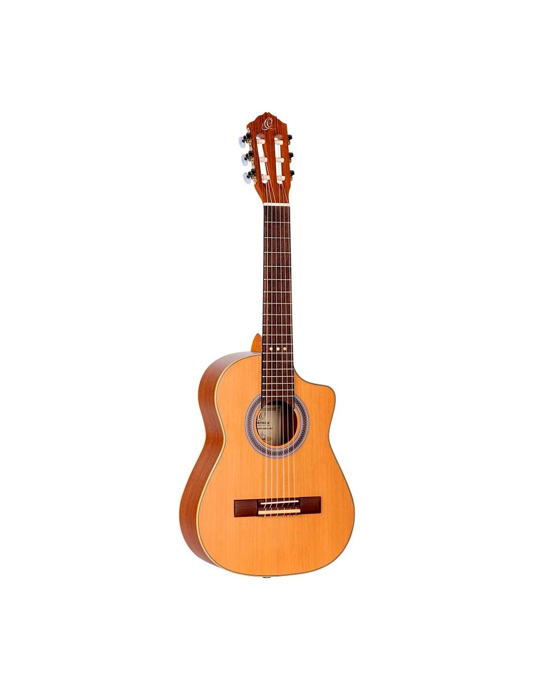 RQ39E Mexican-style electrified deep body requinto. Solid cedar top with natural satin finish. Circles and bottom in satin sapelli. 110 mm extra deep body. Okoumé handle with glossy satin finish. Walnut keyboard and bridge. Ortega MagusGo Electronics. Deluxe case included.