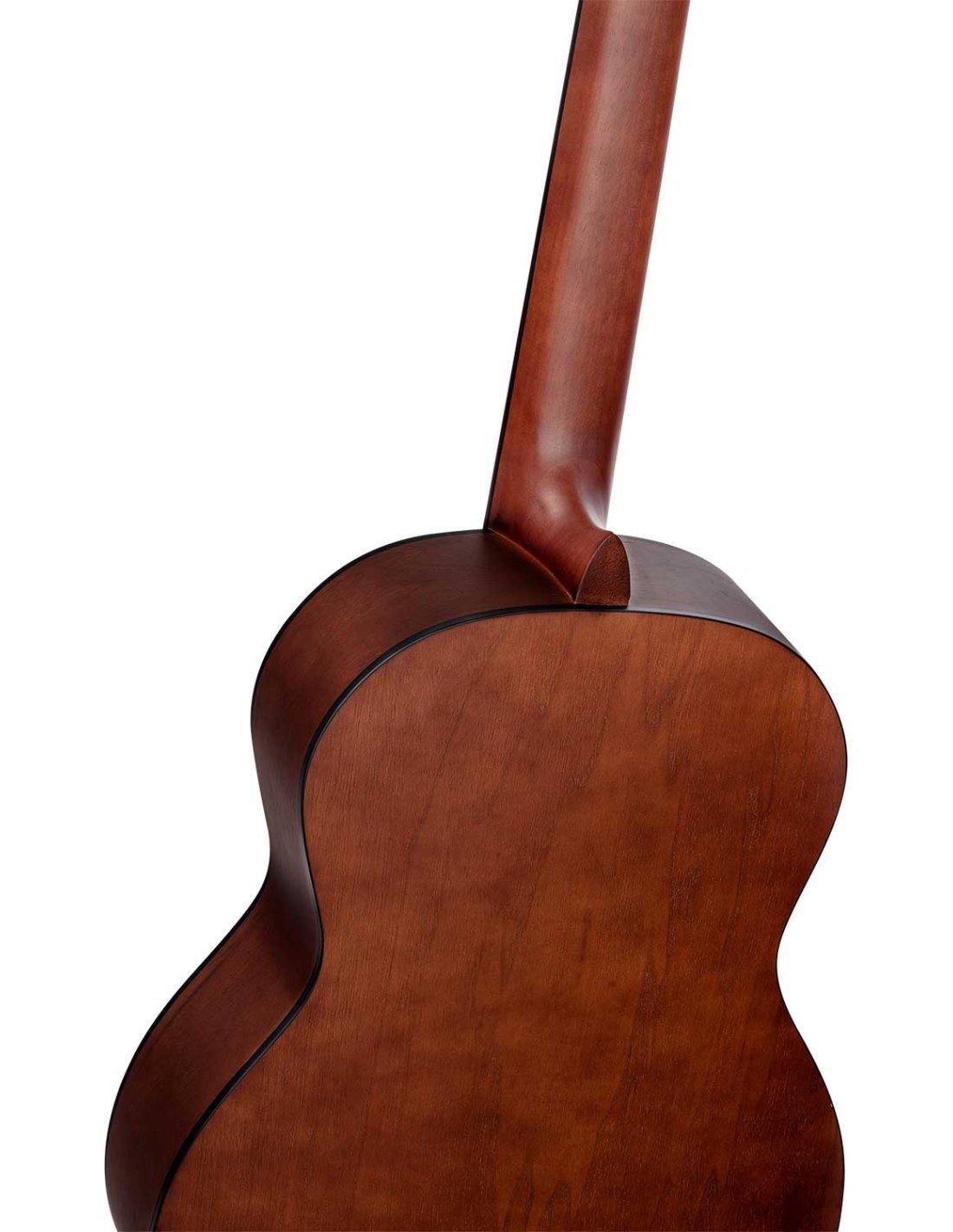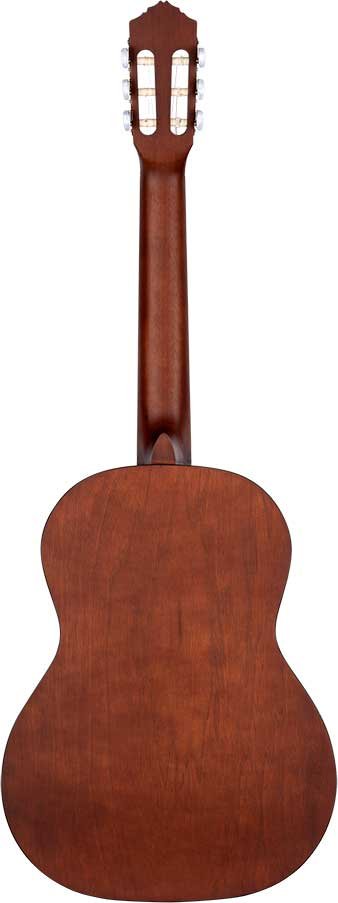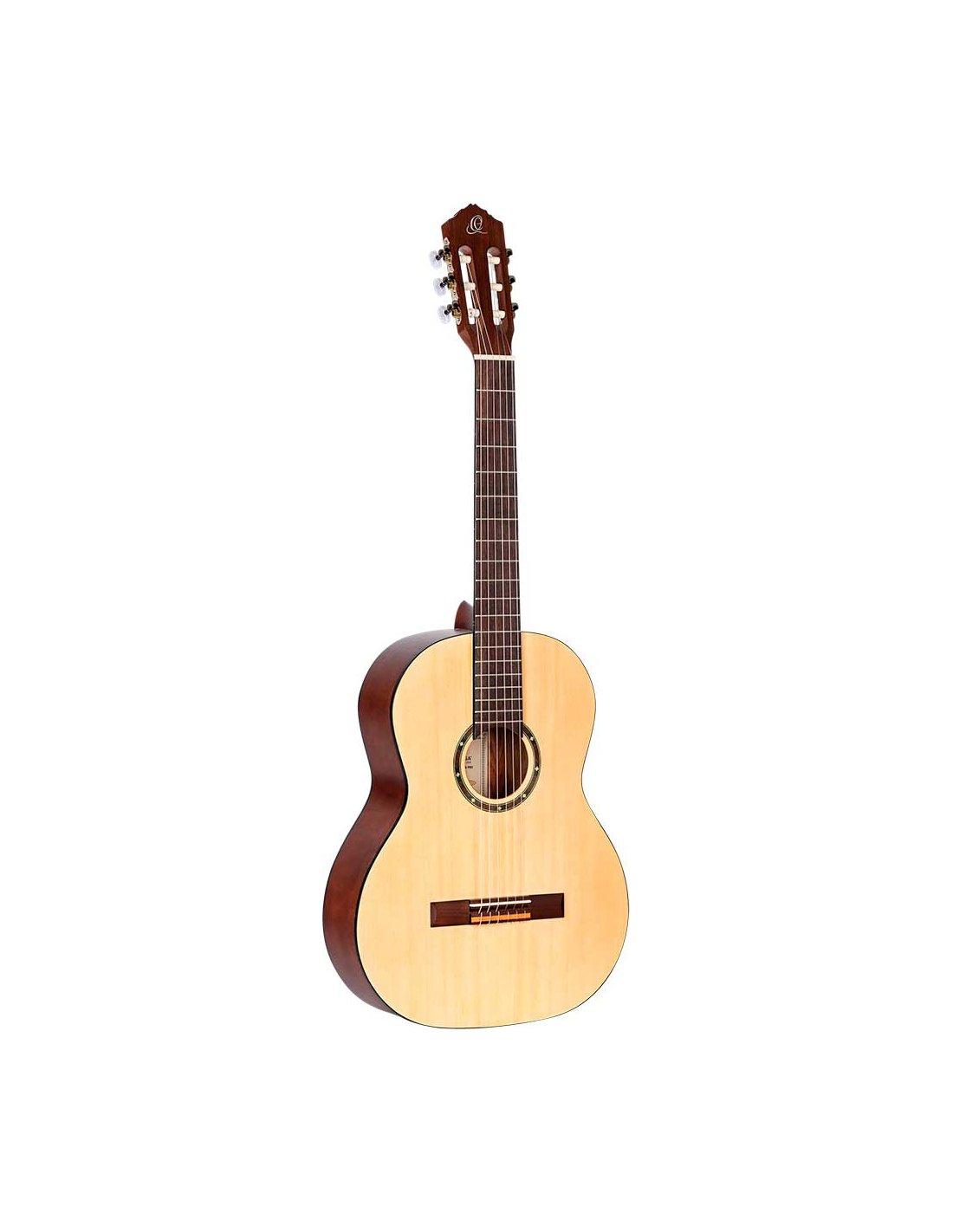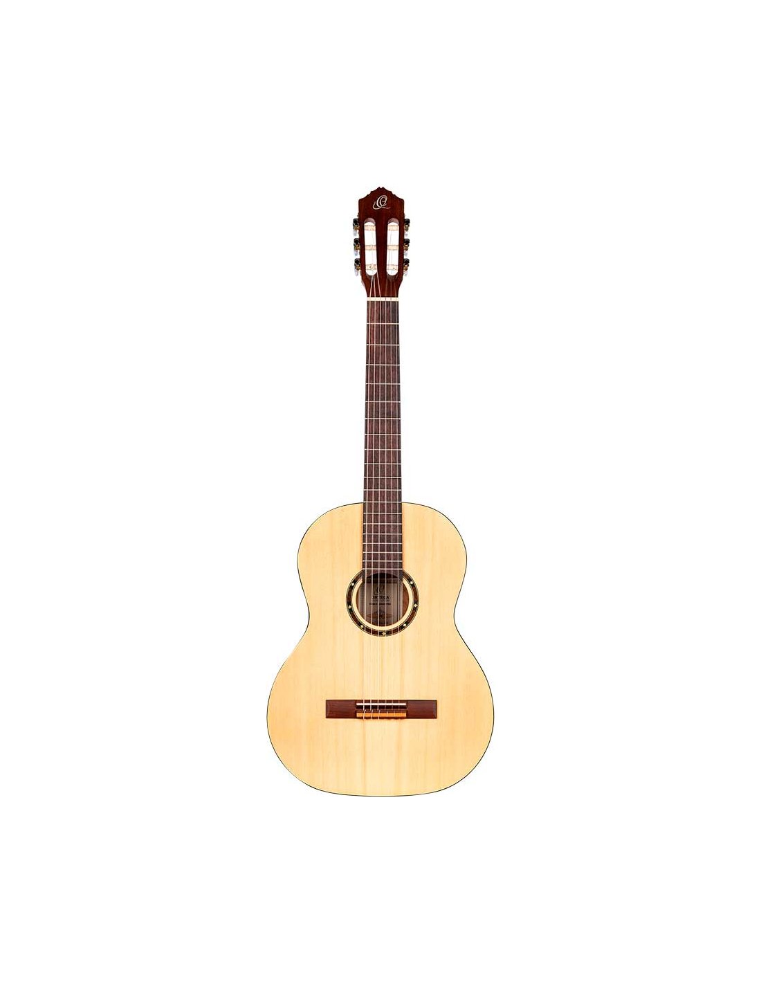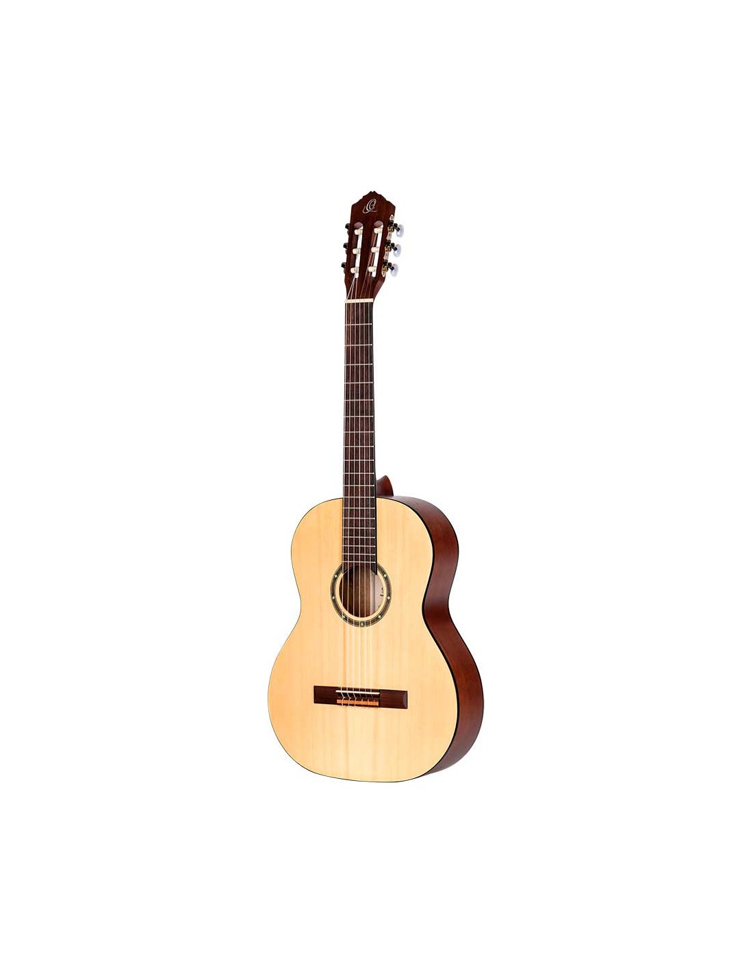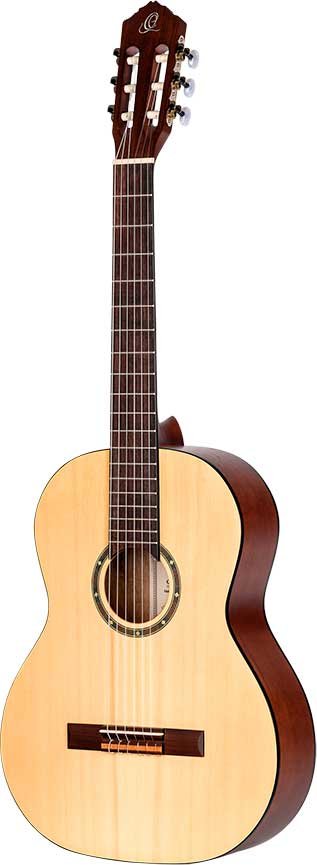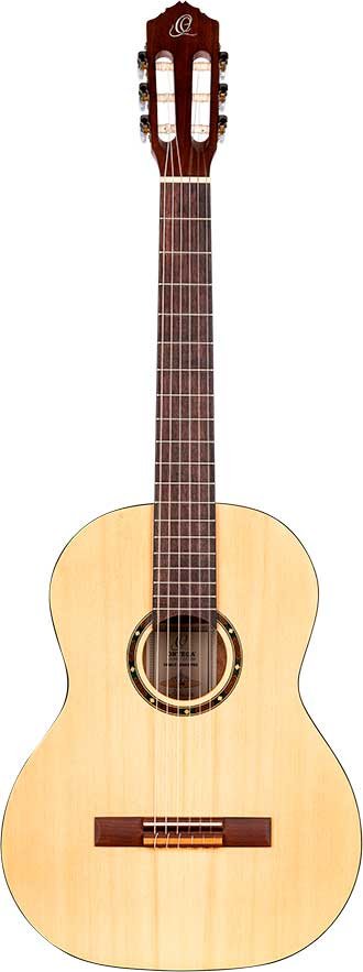 R55 Classic 4/4 guitar with solid top for beginners and students. Top in solid Engelmann fir wood with natural open-pore satin finish. Catalpa bottom and sides with satin finish. NATO handle in satin finish with two-way core. Black ABS binding. Walnut laminate top. Walnut keyboard and bridge. 650 mm (25.59 inch) scale. 52 mm head.