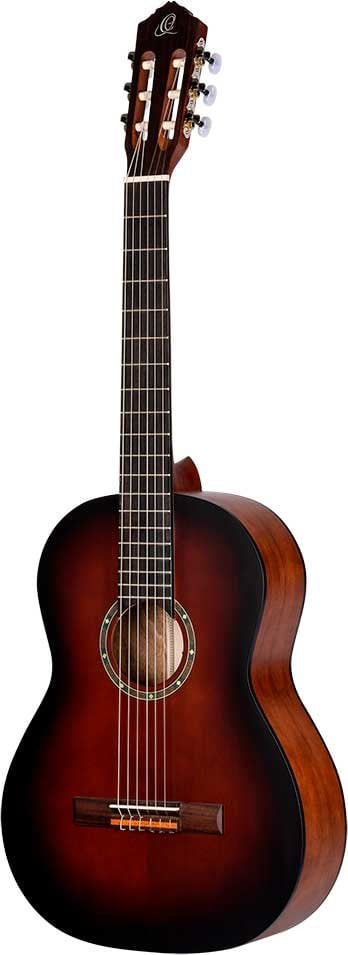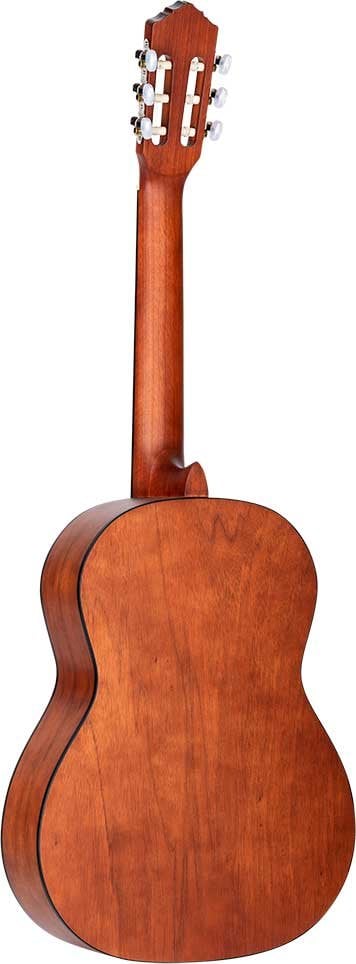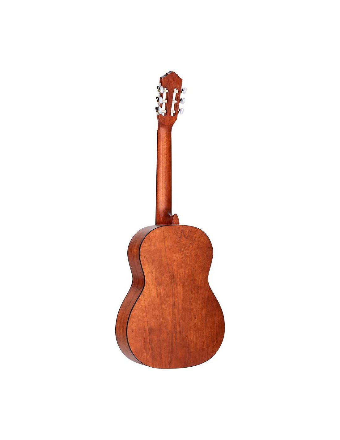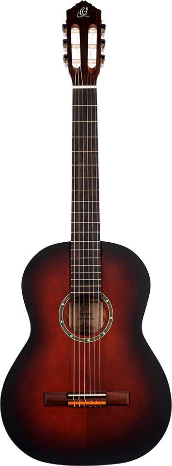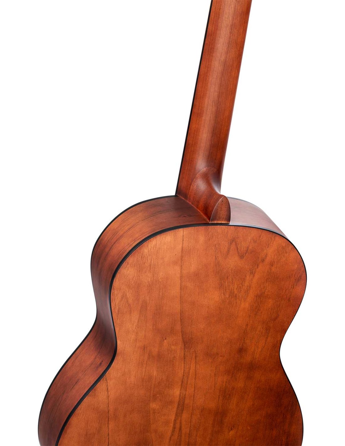 R55BFT Classic 4/4 guitar with solid top for beginners and students. Solid Engelmann spruce top with open pore Bourbon Fade satin finish. Catalpa bottom and sides with satin finish. NATO handle in satin finish with two-way core. Black ABS binding. Walnut laminate top. Walnut keyboard and bridge. 650 mm (25.59 inch) scale. 52 mm head.