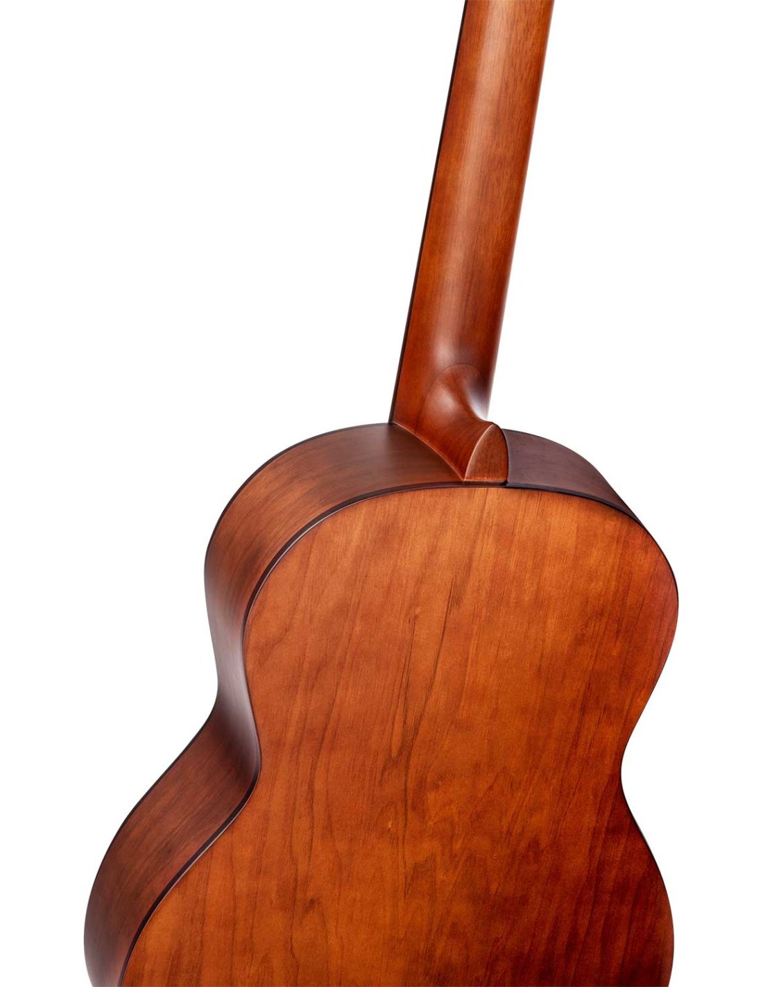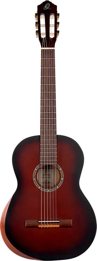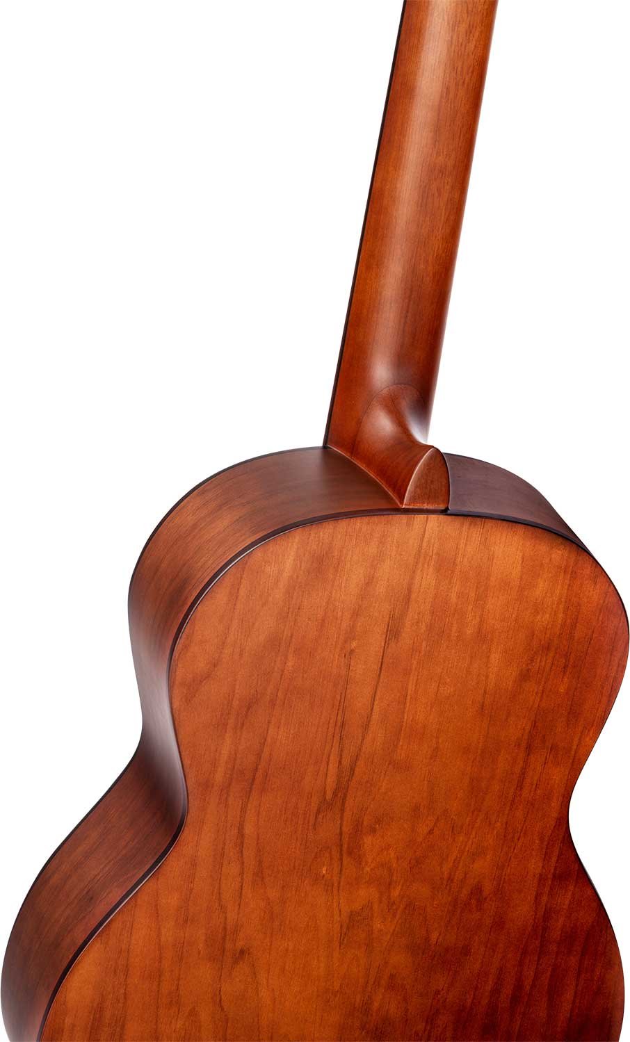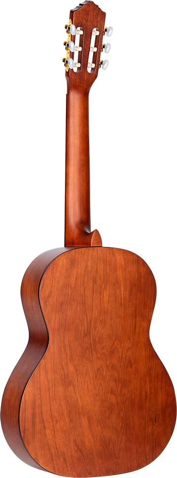 R55DLX-BFT Classic 4/4 guitar with solid top for beginners and students. With ``armrest "style recess on the upper edge that offers greater comfort when performing the right arm when playing seated. Solid Engelmann spruce top with open pore Bourbon Fade satin finish. Catalpa bottom and sides with satin finish. NATO handle in satin finish with two-way core. Black ABS binding. Walnut laminate top. Walnut keyboard and bridge. 650 mm (25.59 inch) scale. 52 mm head.