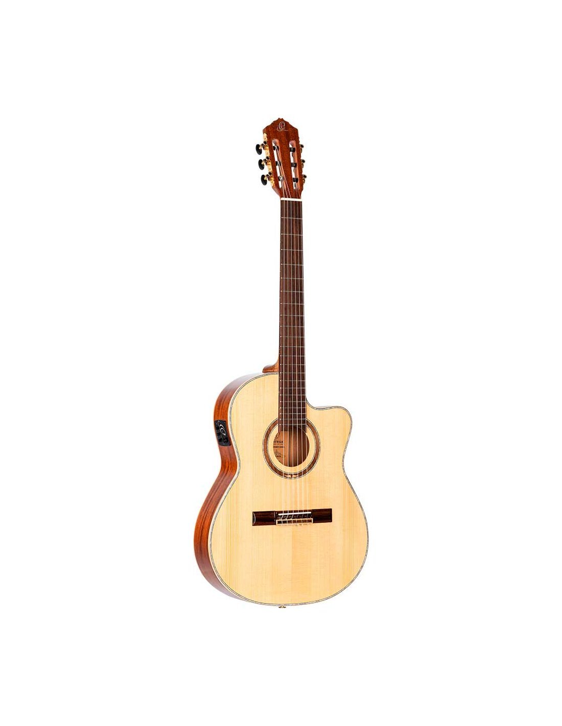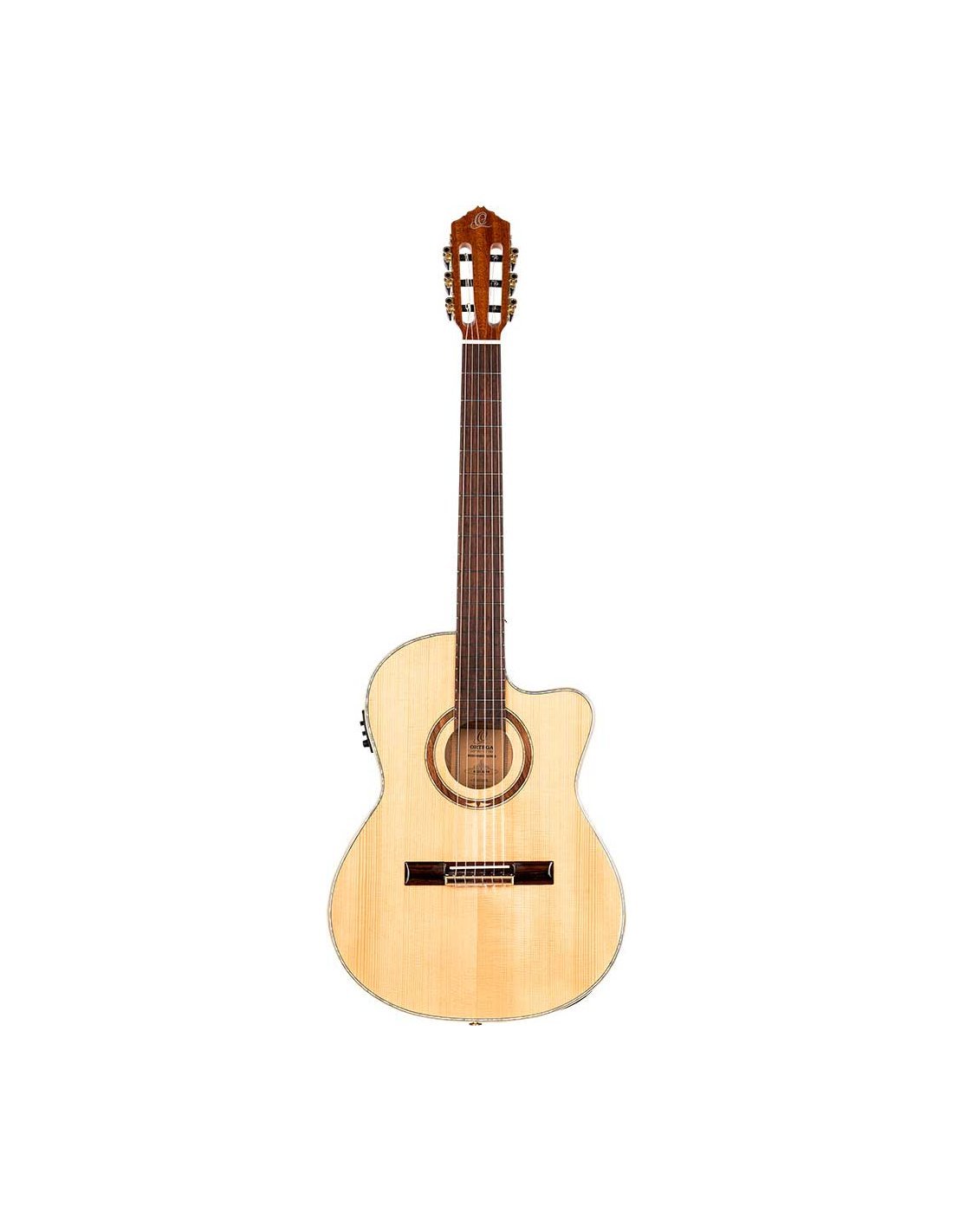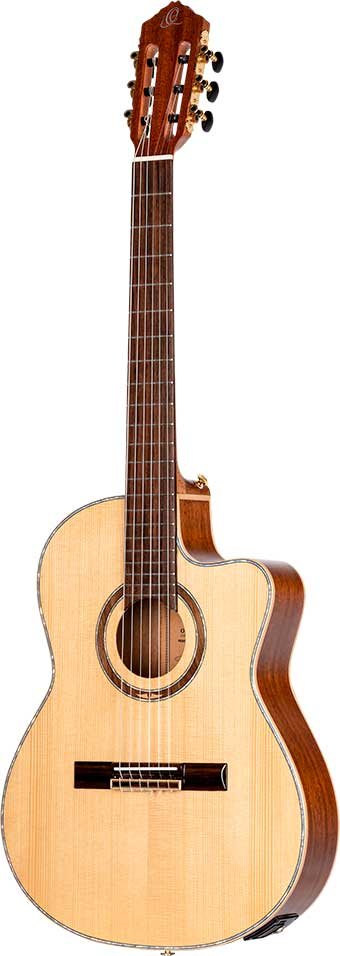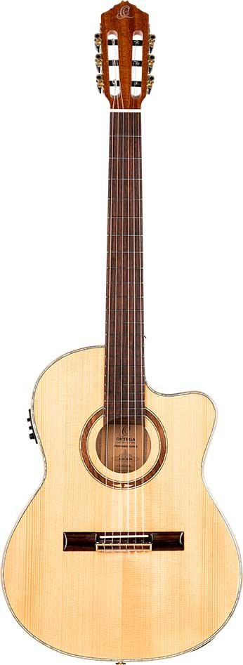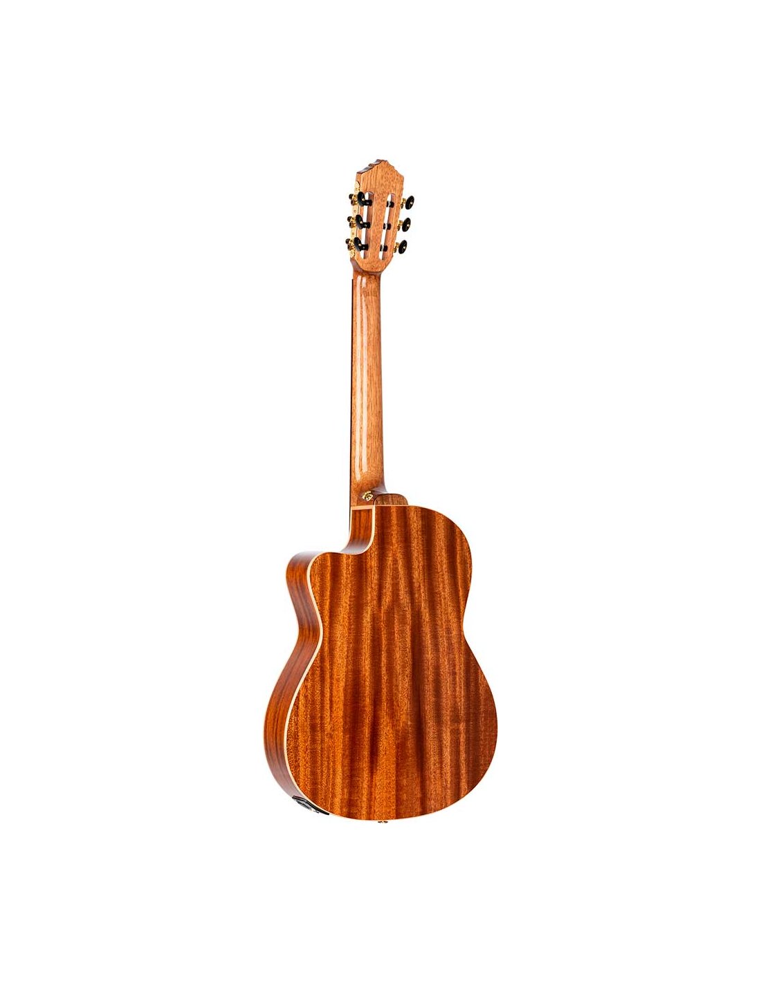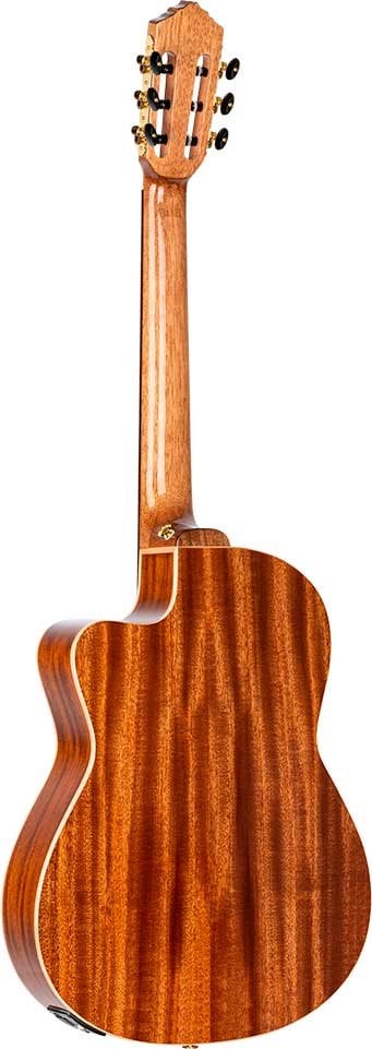 RCE138-T4 Electric classical guitar with missing shoulder from the Feel series. Tight body. Solid Sitka spruce top, mahogany back and sides, mahogany handle. Thin handle, narrower neck. Adjustable core. Rosewood keyboard. Magus Pro preamp with tuner. Natural finish Deluxe case and shoulder strap included.