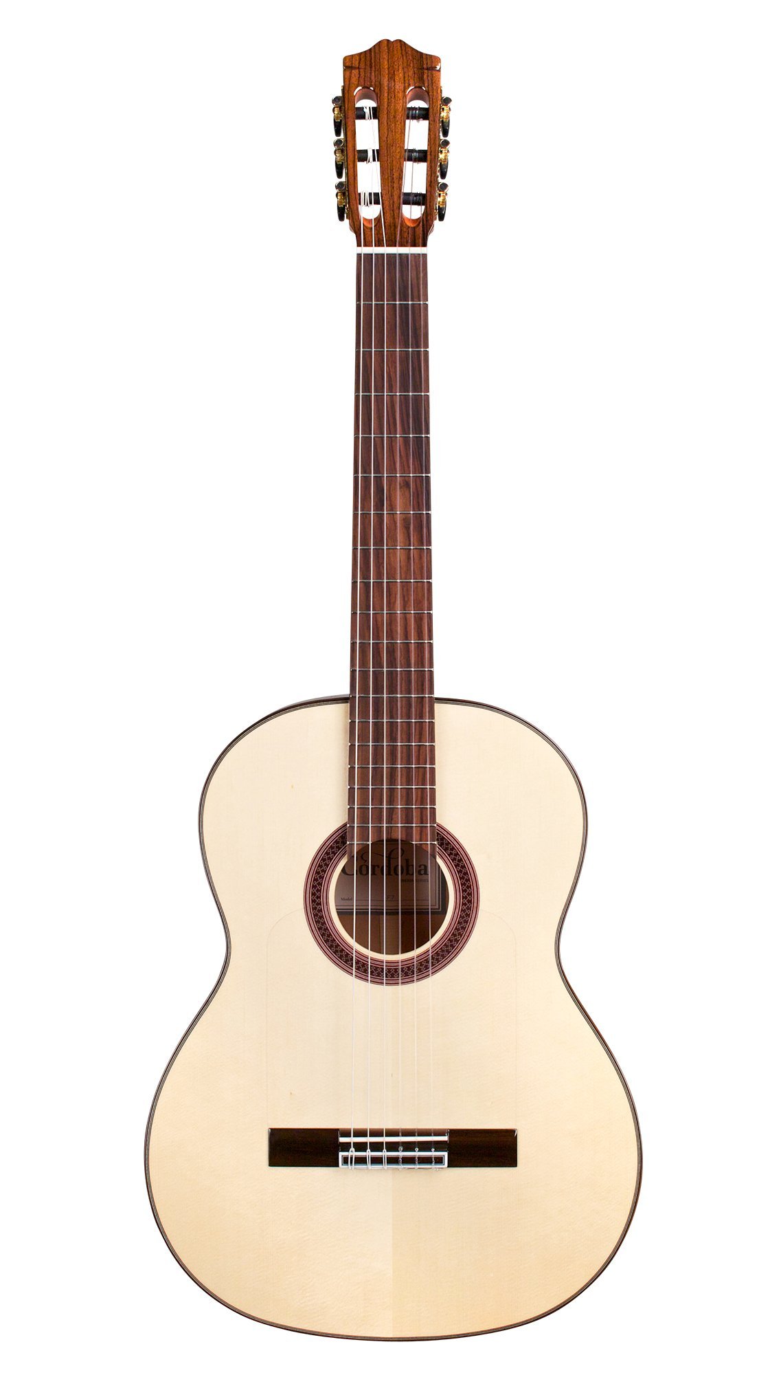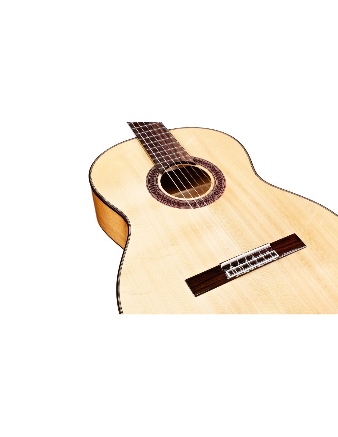 The F7 is our entry-level flamenco model, characterized by the traditional combination of a solid European spruce top combined with a cypress bottom and sides. It's perfect for beginner and intermediate flamenco players. Incredibly light, the F7 is built according to Spanish tradition with a slightly thinner body depth than a classic guitar. In addition, the flat neck angle gives this guitar low action and the bright, snappy tone characteristic of flamenco guitars. Like all Córdoba guitars, the F7 features a two-way truss rod inside the neck for action adjustment and stability over time.