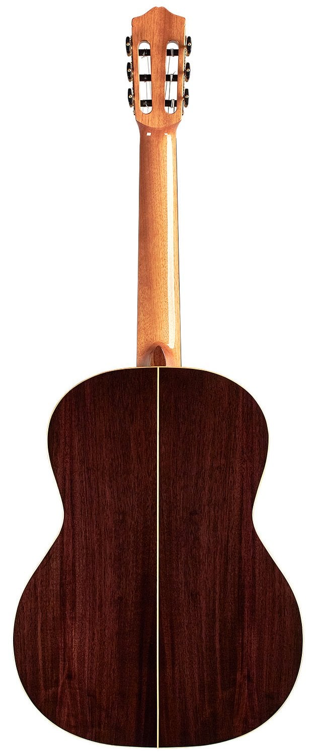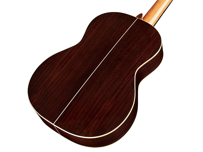 The F7 Paco has given a twist to traditional flamenco guitar woods. In honor of the untimely death of Paco De Lucia in 2014, the F7 Paco's design was inspired by numerous well-known instruments that were the staples of the legendary guitarist's collection. With the solid Canadian cedar top and the Indian rosewood back and sides, the F7 Paco has a fuller, darker and less pungent tone than the standard F7. Built according to the Spanish tradition, it is incredibly light, with a body depth slightly less than that of a classical guitar. The glossy finish, the maple binding and the flamco-style transparent plate complete this homage to a great flamenco player.