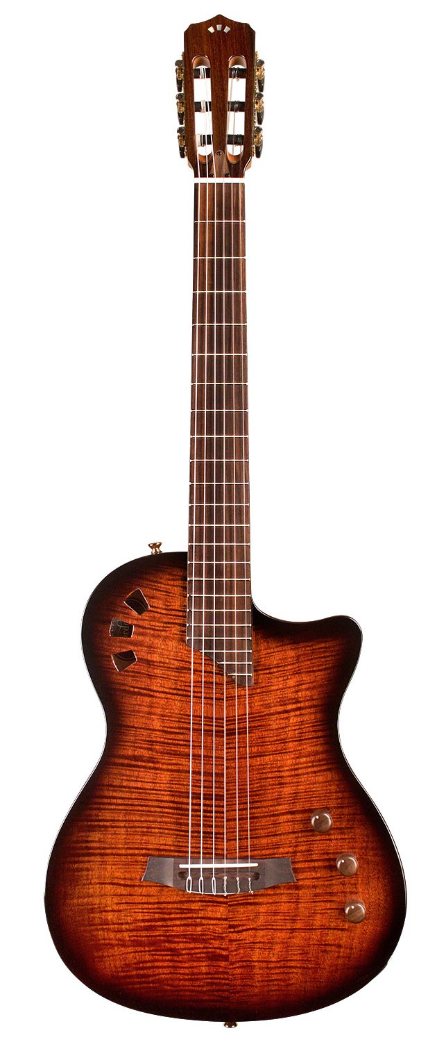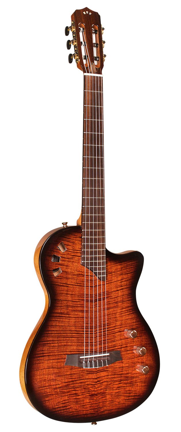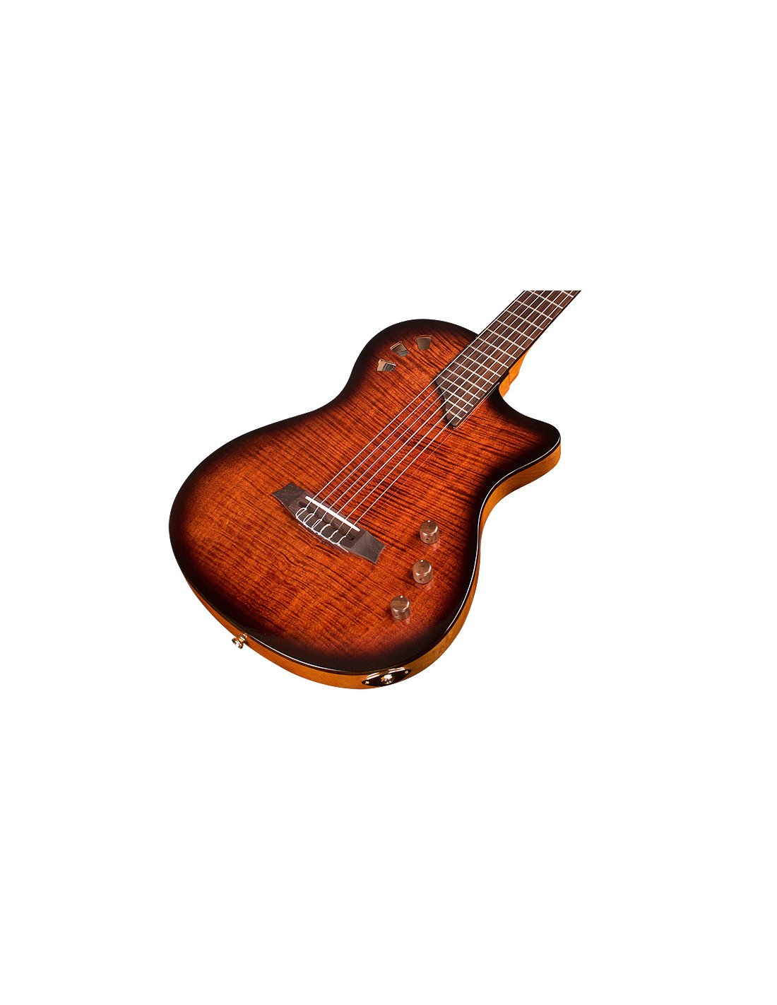 Cordoba's first nylon string electric guitar! For years in the making, the Cordoba Stage is a combination of craftsmanship and innovation. Created to offer the same unplugged Cordoba acoustic sound on all stages, from the studio to the stadium. The Stage combines a solid spruce top with marbled maple veneer to ensure projection, volume and a distinctive aesthetic. Edge Burst finish.