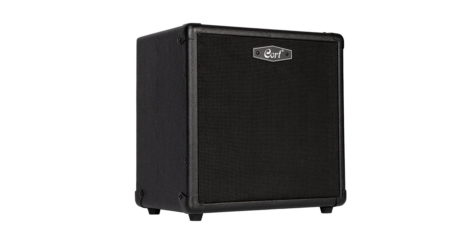 Combo amplifier for electric bass guitar.Power: 20W R.M.S. Speaker: Cort Custom 8 4Ω. Controls: Volume, Bass, Middle, Treble. Button mode (mid-frequency cut, low-and-high-frequency boosts). Aux-In input for external sound sources. Headphone output. Dimensions: 315 (W) x 210 (D) x 305 (H) mm. Weight: 6 kg