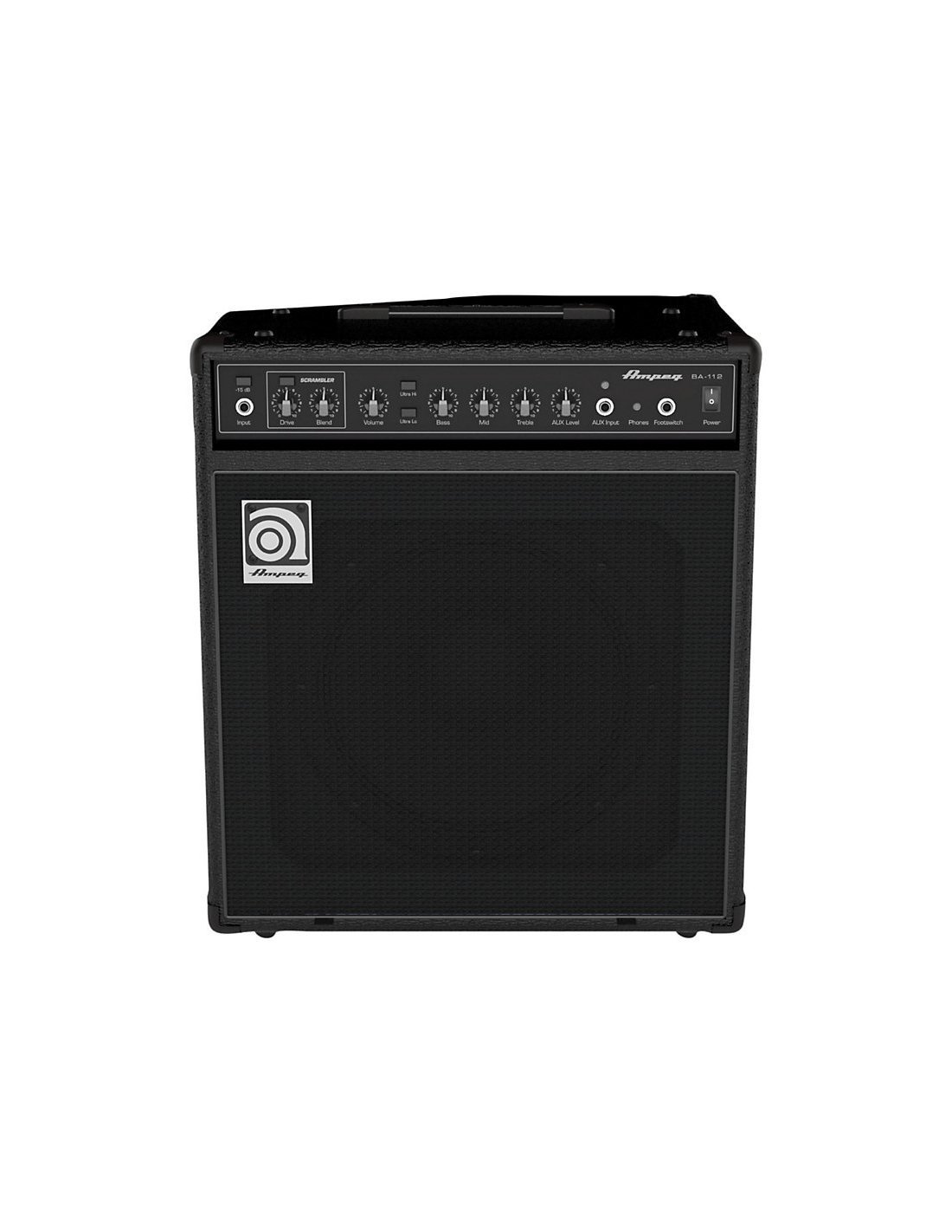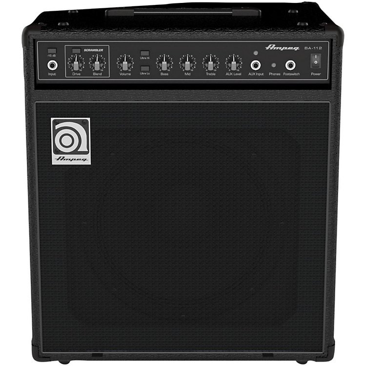 Ampeg BA112V2 Combo Electric Bass Amplifier. The Ampeg BA112V2 Combo is a 75-watt electric bass amplifier with Legacy Ampeg preamp w/3-band EQ, Ampeg Ultra Hi/Lo tone shaping, Bass Scrambler overdrive, Aux input, headphone output,