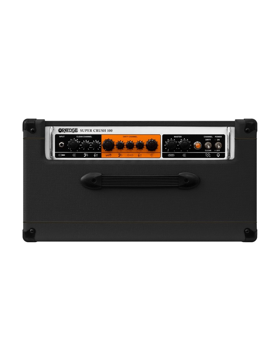 New Super Crush 100 Combo for transistor electric guitar. Celestion G12H-150 1x12 speaker for classic British sound. 2 totally independent channels. Single-ended analog preamplifier. 100W Class A/B power amplifier. Clean channel: volume, bass, treble. Distorted Channel: Volume, Bass, Mid, Treble and Gain. Main volume. Digital reverb. Buffered FX cycle. Channels and reverb selectable via footswitch. Balanced XLR output with CabSim (2x12 cab simulation). Rear cab selector to select open/closed. Speaker outputs: 1x16ohm, 1x8ohm, 2x16ohm. Dimensions: 23x55x25 cm. Weight: 11.2 kg. From the clean channel to the high-gain channel, the Super Crush draws inspiration from the classic Rockerverb response in a transistor amplifier, offering tube dynamics, presence and harmonics. Black finish.