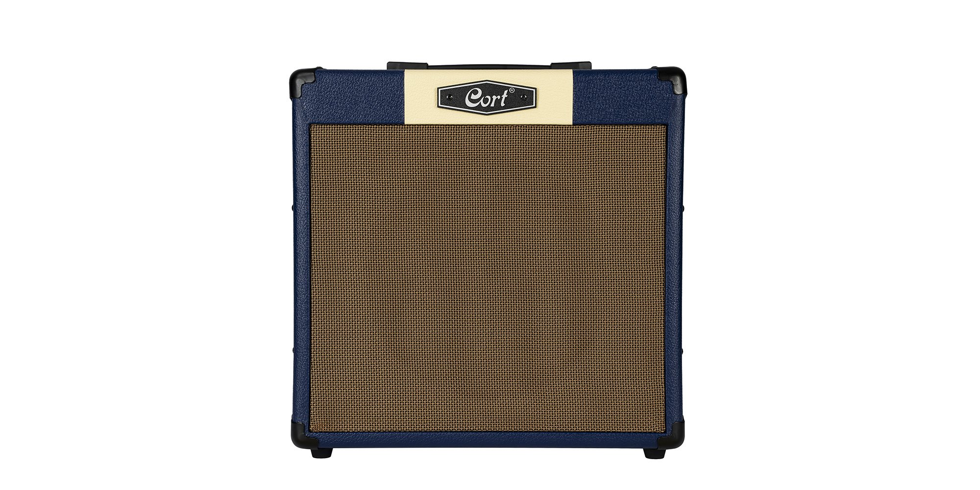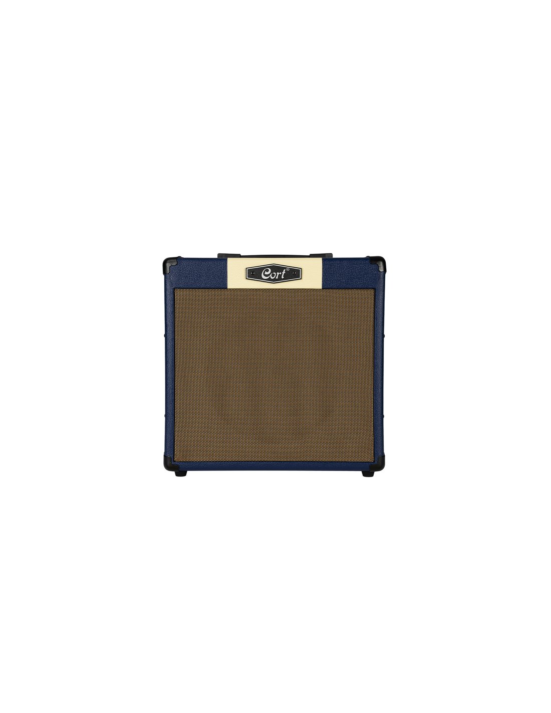 Cort CM30R DB Amp Electric Guitar Amplifier color DARK BLUE. The Cort CM30R DB Amp is a 30-watt electric guitar amplifier with 2 channels, Volume, Channel Switch, Gain, Volume, Treble, Middle, Bass, Reverb, Bluetooth, Aux In input, headphone output, 1