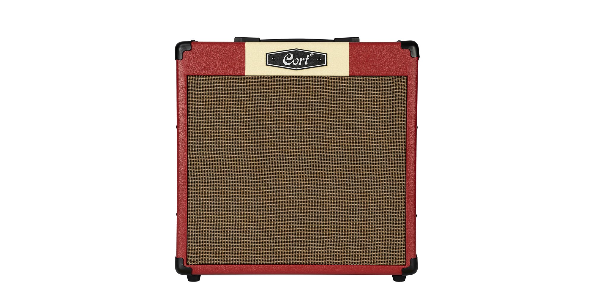 Cort CM30R DR Amp Electric Guitar Amplifier color DARK RED. The Cort CM30R DR Amp is a 30-watt electric guitar amplifier with 2 channels, Volume, Channel Switch, Gain, Volume, Treble, Middle, Bass, Reverb, Bluetooth, Aux In input, headphone output, 1