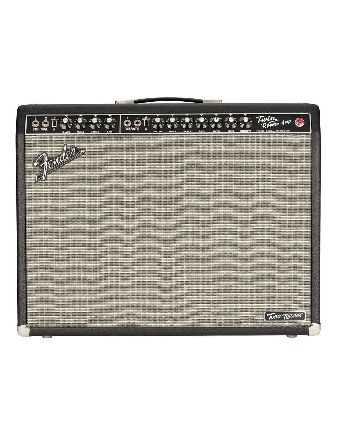 Fender Tone Master Twin Reverb Electric Guitar Amplifier. The Fender Tone Master Twin Reverb is an electric guitar amplifier equipped with a high-performance 200-watt digital power amplifier to achieve the 85-watt output power of an original Twin tube amplifier. It has 2 channels (Normal/Vibrato), controls (Normal Ch.) Bright switch, Volume, Treble, Middle, Bass, (Vibrated Ch.) Bright switch, Volume, Treble, Middle, Bass, Reverb, (Tremolo) Speed, Intensity, Balanced Line Out XLR w/IR Cab Sim Off/1/2, Output Power (1W, 5W, 12W, 22W, 40W, 85W), USB for firmware upgrade, 2 12" Jensen N-12K