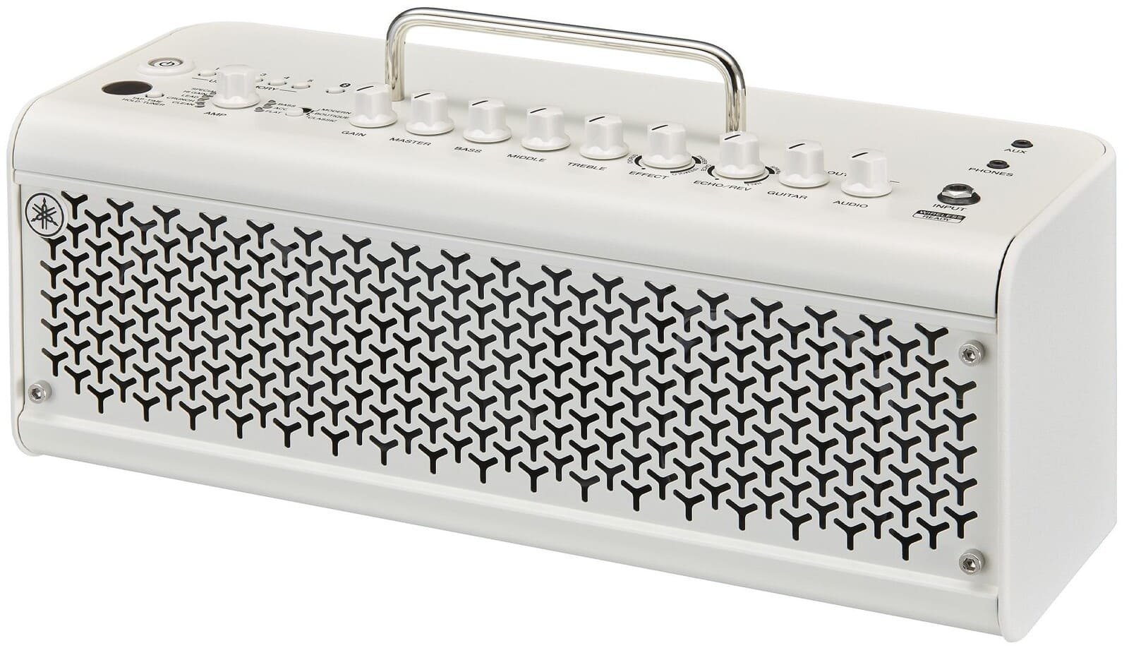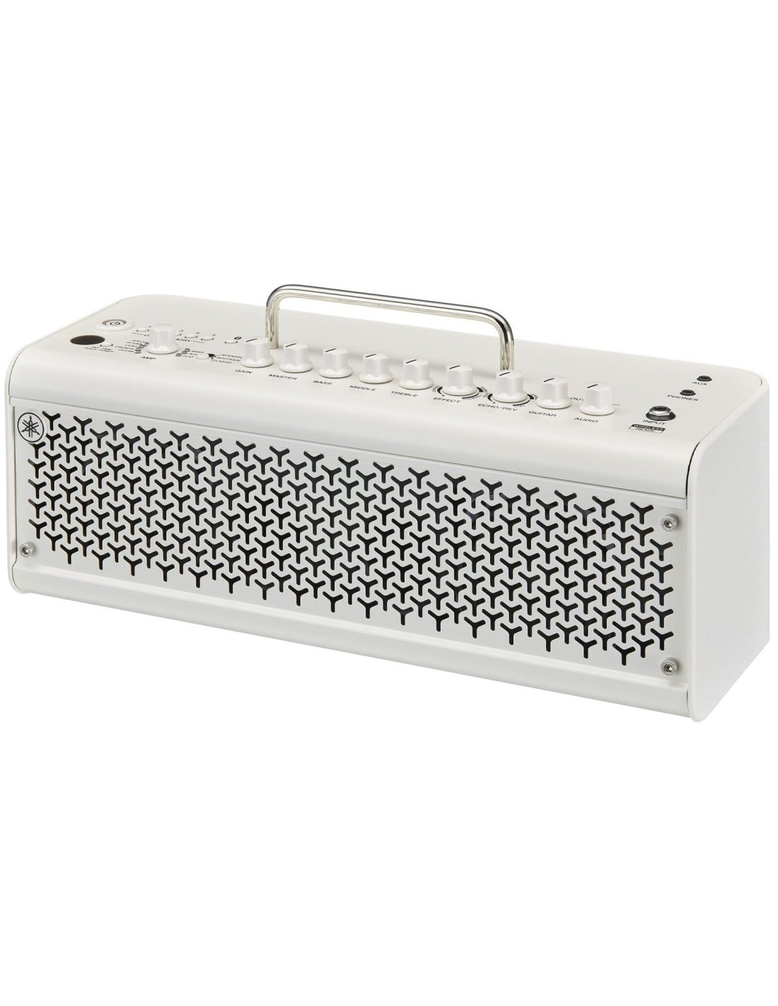 YAMAHA THR30II WL WHITE is a stereo combo amplifier with Bluetooth connectivity for guitar. Technical features include 30W of power, 2 integrated 3.5" speakers, one-knob digital echo/reverb, 3-band Eq, 4 digital effects Chorus, Flanger, Phaser, Tremolo, 8 selectable digital amplifiers, integrated Line6 wireless receiver, plug-n-play USB connectivity, 5 integrated memory slots for saving presets. It has input through TRS, phones and aux through TRS 3.5mm and line output