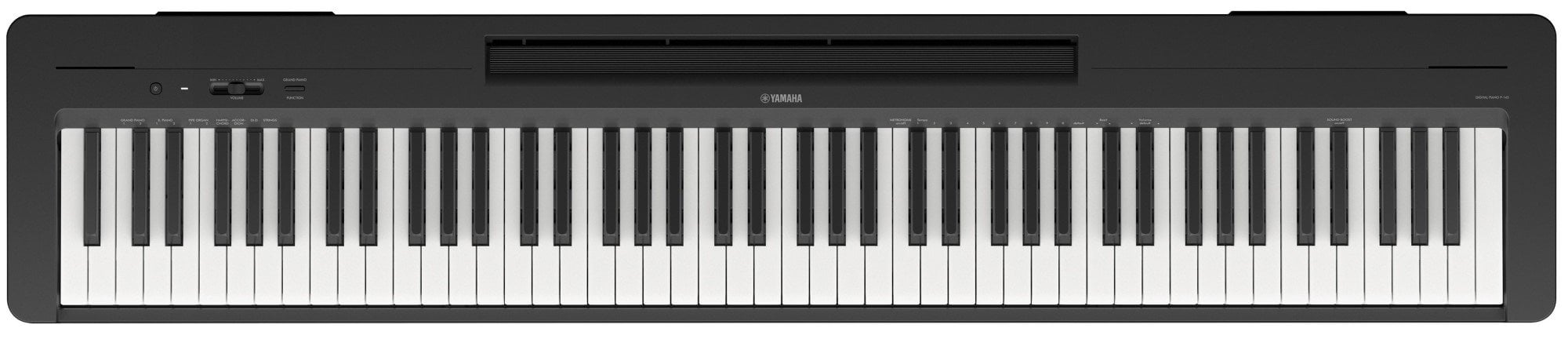 The P145B is a compact black Yamaha digital piano with 88 keys. It features a short, slim body design and a keyboard with Graded Hammer Compact technology that offers the same feeling as playing an acoustic piano with weighted keys
