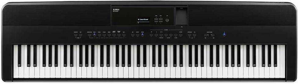 The ES520 B is a compact black Kawai digital piano with 88 weighted keys. It is equipped with a triple sensor Responsive Hammer Compact II mechanism, which offers a response to touch like an acoustic grand piano