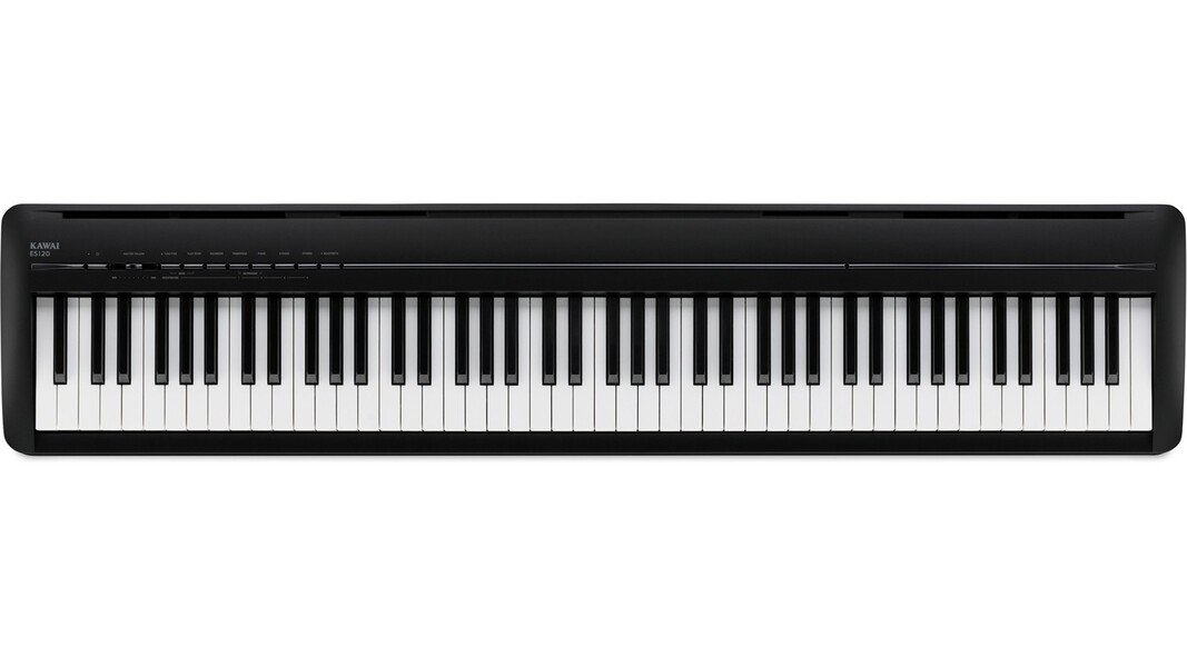 The ES-120 B is a compact black Kawai digital piano with 88 weighted keys. It features an improved Responsive Hammer Compact mechanism, specially designed to provide the touch of a grand piano, within a compact format, and Harmonic Imaging Sound technology, which offers a realistic musical experience