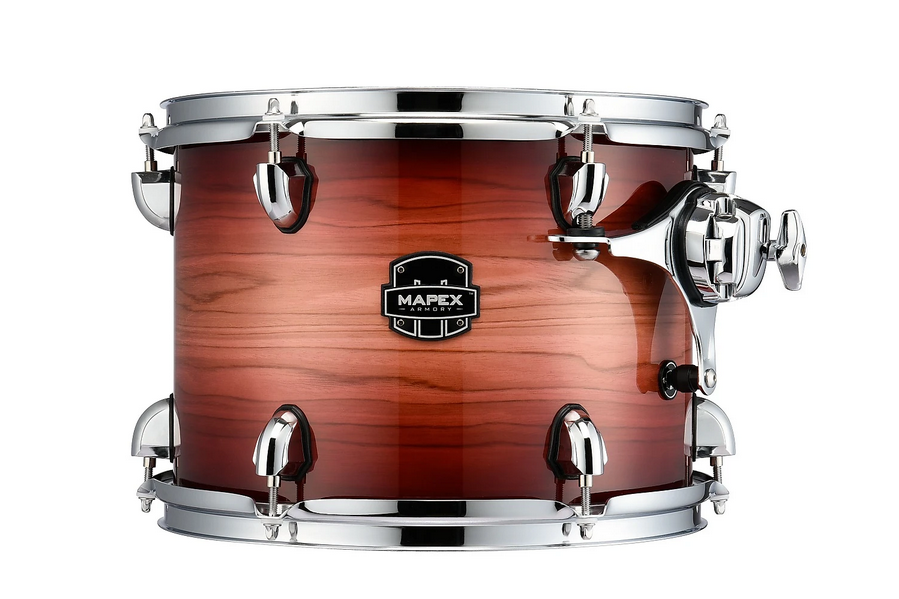 The Armory series is the latest evolution of the Mapex Hybrid Shell concept. The extraordinary Birch and Maple barrels offer a spectacular tonal range, with Soniclear edges that, allowing the skin to adhere perfectly, guarantee maximum dynamic response and great simplicity in tuning. 5-piece battery Redwood Burst RA Case 20x16 Tom 10x8 - 12x9 Eardrum 14x14 Snare Armory Tomahawk 14x5.5 Steel Birch-Maple Barrels 6-layer, 7.2 mm Circles 2.3 mm Power Hoops Chrome Hardware TH687S X 2 - AC910 X 2 Rounded Edges with Soniclear™ System and Soniclear™ Suspension System