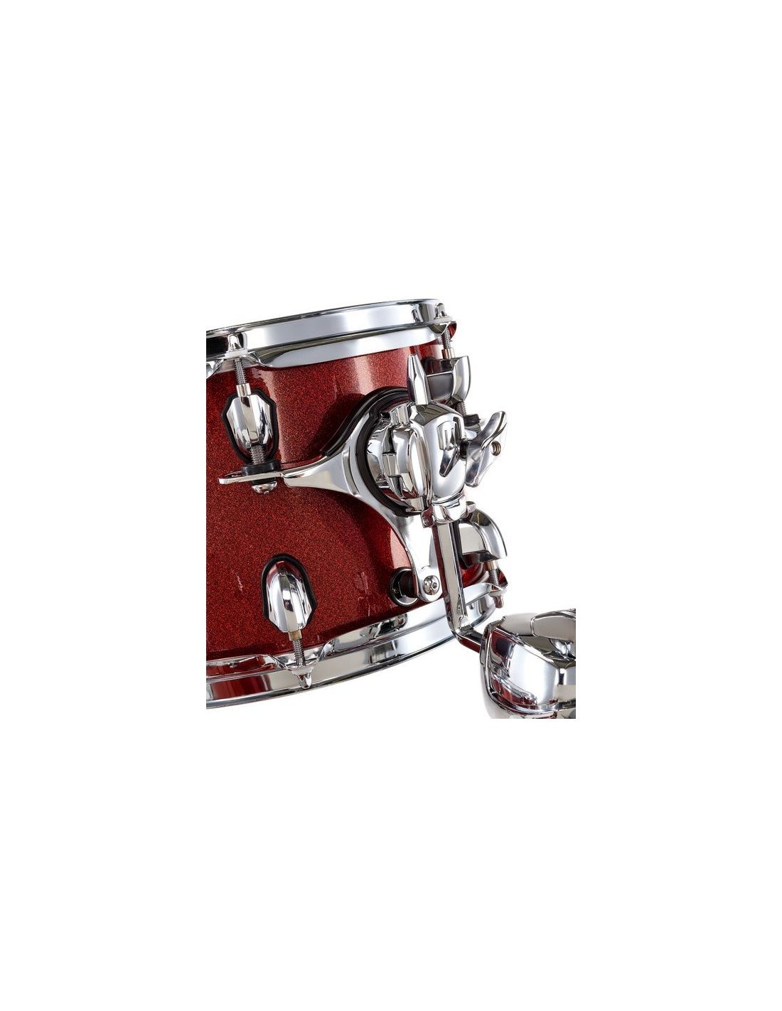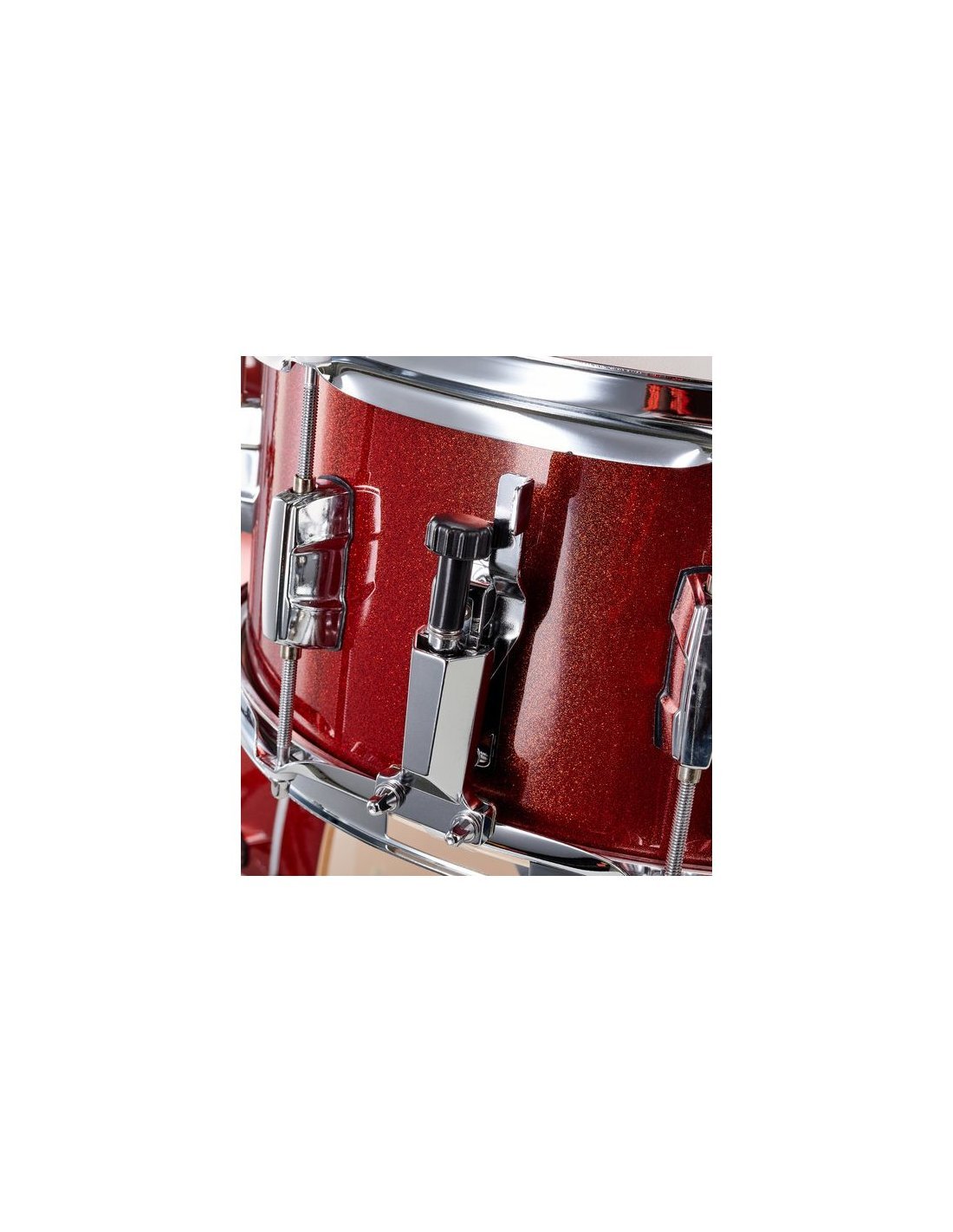 5-piece battery Blood Orange Sparkle OR Case 22x18 Tom 10x7 and 12x8 Floor Tom 16x14 Snare in SD1465 finish 14x6.5 Birch Drums 6 layers 7.2 mm Circles 2.3 mm Power Hoops Hardware: Reggitom TH676 Rounded Edges with Soniclear system Soniclear Suspension System