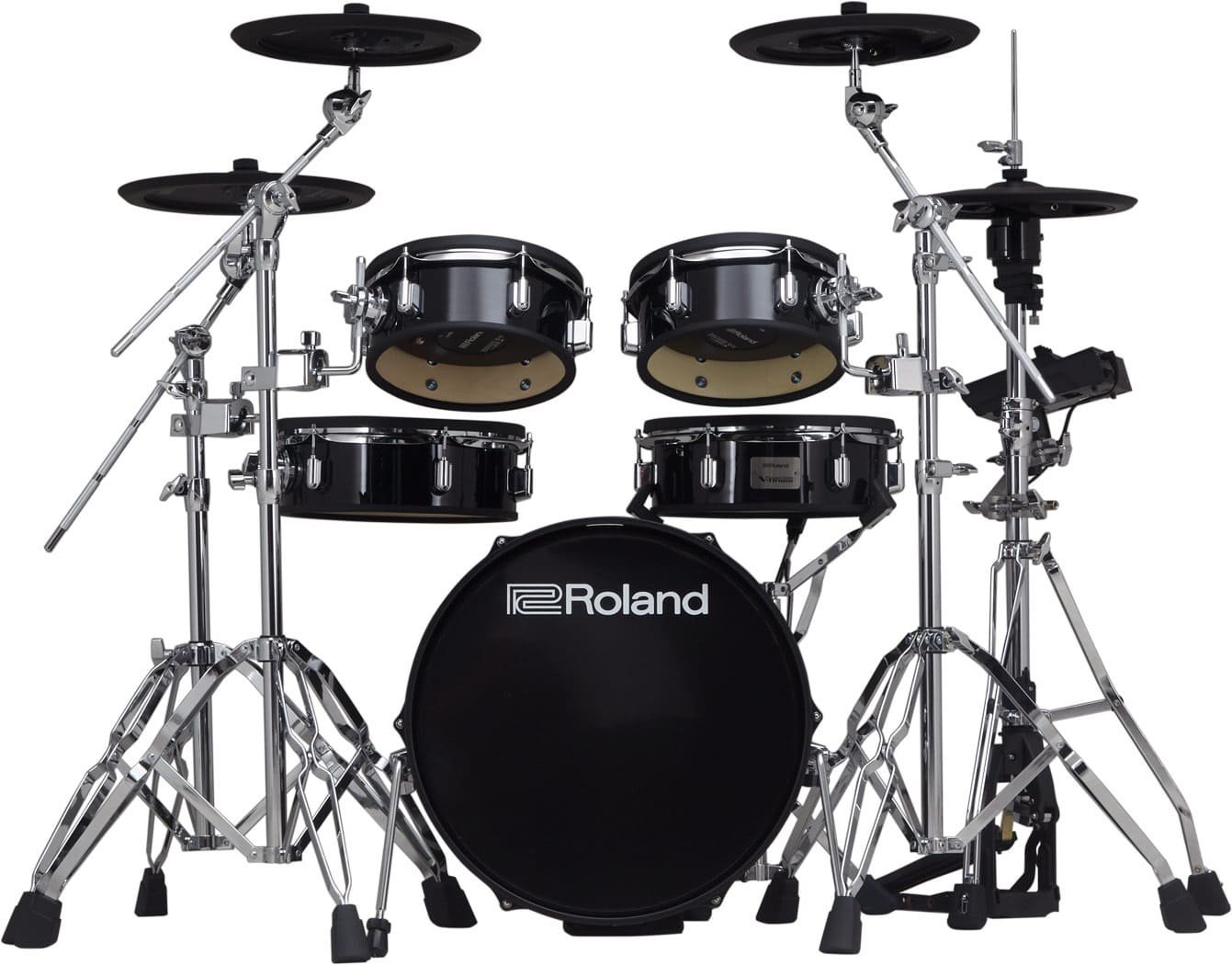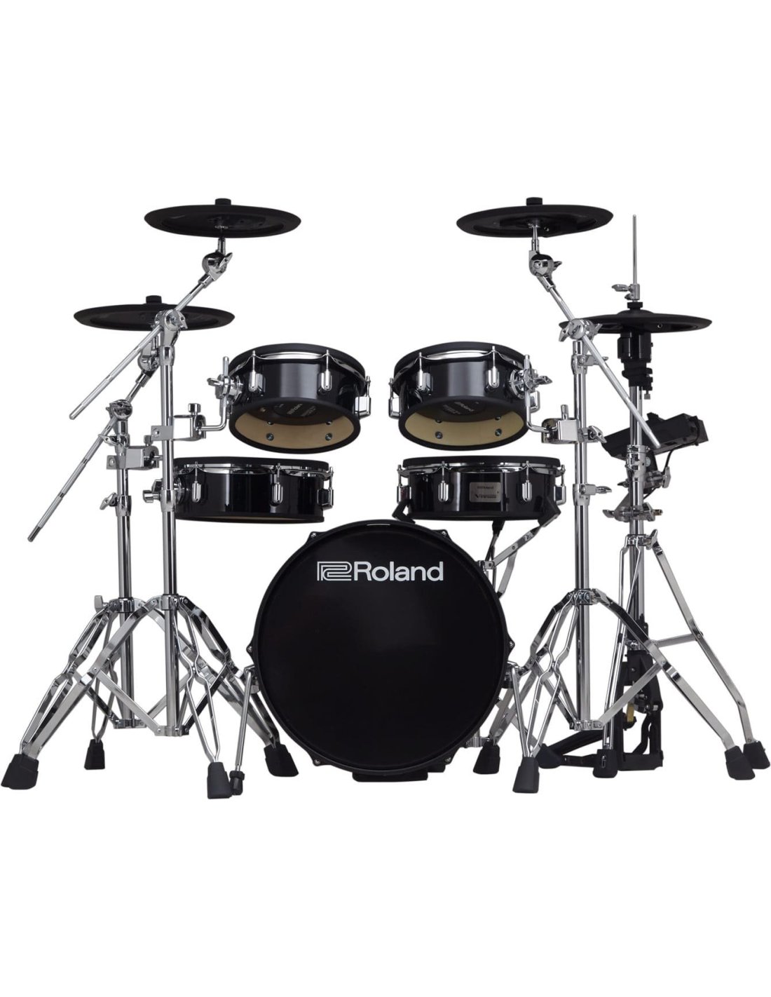 The more affordable VAD306 kit includes the TD-17 module and is equipped with a bass drum, snare drum and tom with shallower wooden drums,
