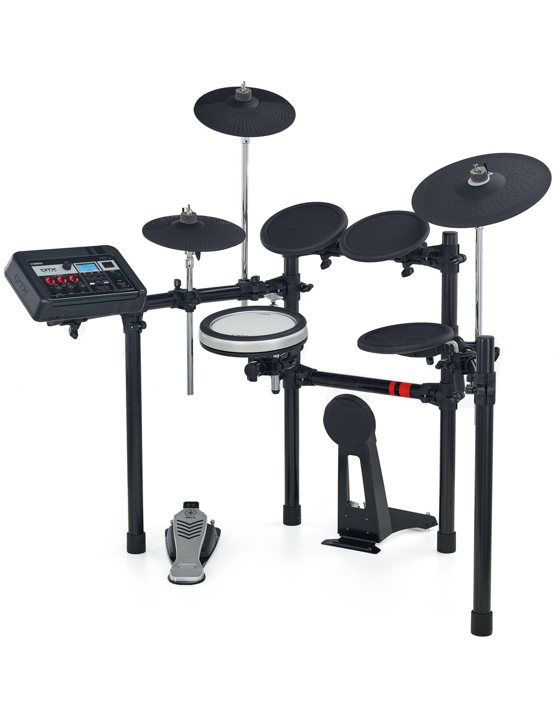 YAMAHA DTX6K-X The Yamaha DTX6K-X is a compact and versatile electronic drum set with a set of 10 pads, 3 cymbals and a DTX-PRO sound module that offers realistic sounds and a dynamic response to blows. It has USB, MIDI and audio connections for use with recording and performance software, and an internal recording function for creating drum tracks. The DTX6K-X also offers built-in learning capabilities and a wide range of sounds and presets for