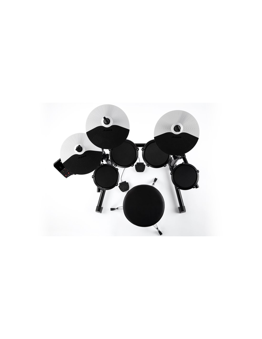 Debut Kit includes the DM-Lite sound module equipped with 10 drum preset KITS programmed by Alesis using 120 sounds that use a proprietary technology of the American company: Intelligent Dynamic Articulation.These kits cover most traditional and modern musical genres in which the drum instrument, whether acoustic or electronic, plays an important role. The sound module can be connected to a mixer or to any amplifier system using the ¼” jack audio outputs, for example to an Alesis Strike Amp 8 speaker (NOT included: click here for information). When you don't want to disturb, you can use the headphones to play and practice with complete peace of mind. The Debut KIT module includes a virtual drum instructor with 30 tracks and special rhythm exercises to help you improve your drumming. Thanks to the stereo mini-jack input (TRS 1/8”) you can connect any audio source (smartphone, iPad, computer, audio player) to the sound module on which