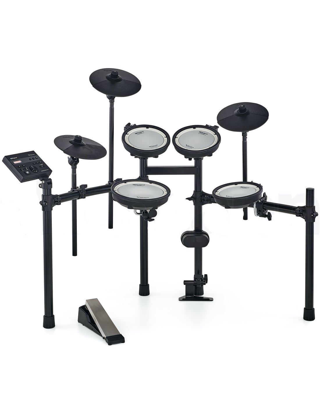 you'll appreciate the excellent response of the PDX-8 snare drum and the three PDX-6A toms, all equipped with Roland's silent double-layer mesh heads.