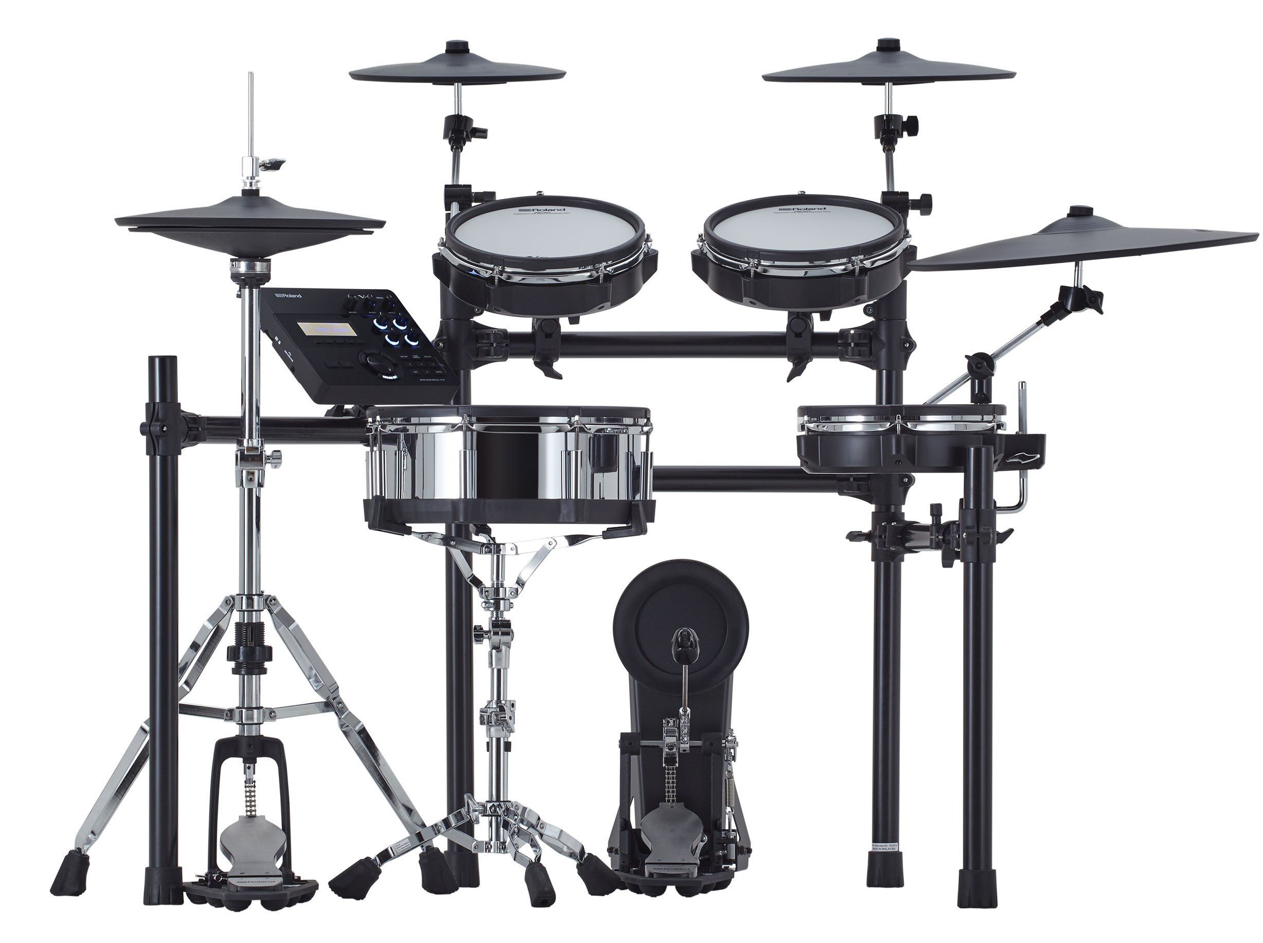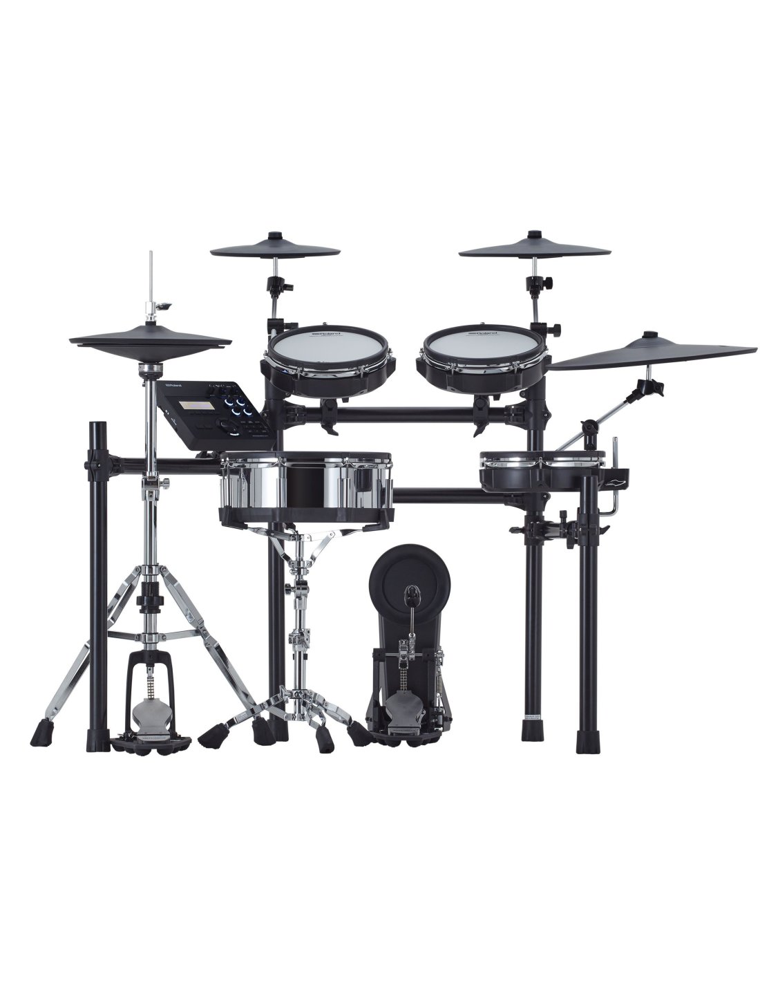 ROLAND TD-27KV2 + MDS-STD2 is a professional electronic drum kit that offers realistic playability, high-quality sounds, and training features, making it ideal for practicing, playing live, and recording. Technical features include: TD-27 sound module with advanced drum sounds, training functions and connectivity options, 1 14-inch PD-140DS speaker with 2-layer mesh leather, 3 12-inch PDX-12 rack toms with 2-layer mesh skins, 1 8-inch PDX-8 suspended tone with 2-layer mesh leather, a 14-inch VH-14D hi-hat with natural movement, 18-inch Crash and Ride CY-18DR cymbals, FD-901 hi-hat pedal with realistic movement, KD-ST220A kick pedal with realistic feel and MDS-STR rack structure D2. It also features realistic and detailed drum sounds based on Roland's Prismatic Sound Modeling technology, PureHeat technology for an ultra-realistic pad response, more than 1,400 drum sounds, 40 preset kits, 100 user slots, 30 types of digital effects, trigger inputs via USB audio/MIDI and jack, L/R Main out, headphone input, footswitch control and Bluetooth implementation