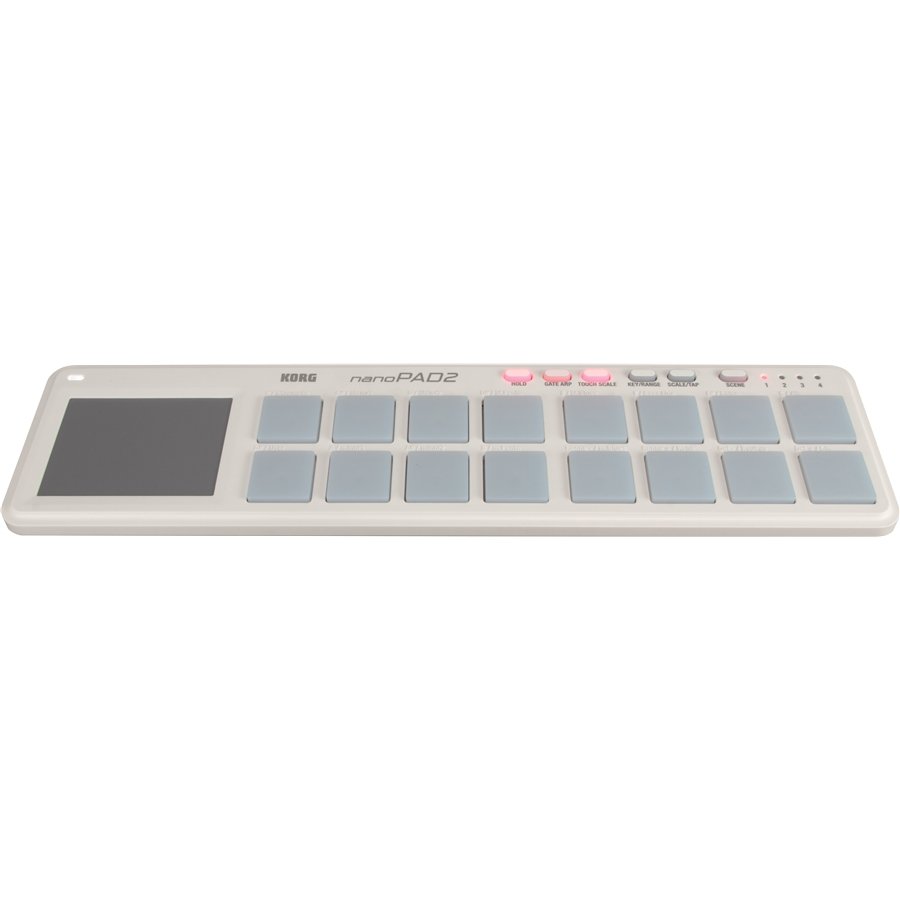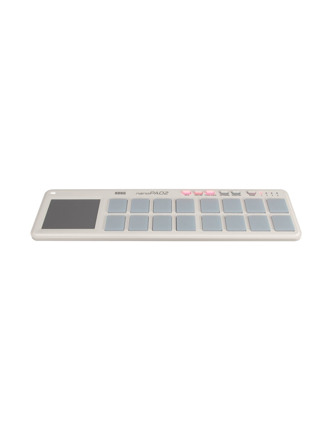 The NANOPAD2 is a Korg mini-USB-powered controller with X/Y touch pad, 16 trigger pads with 4 speed curves, Hold, Gate Arp, Touch Scale, Key/Range, Scale/Arp and Scene keys and 4 customizable user memories.