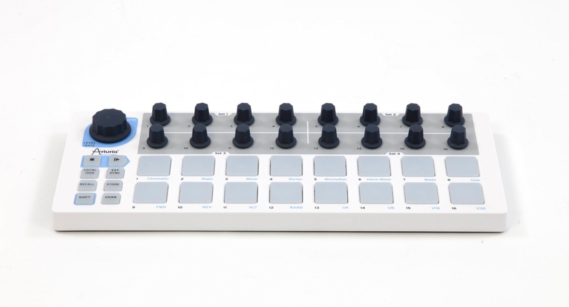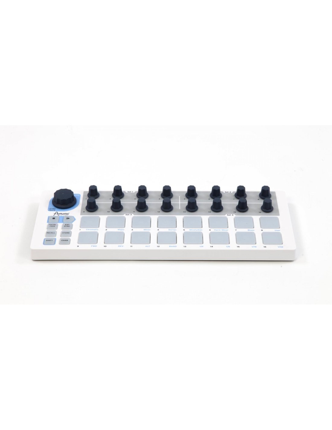 ARTURIA BEATSTEP is a control surface with rotating Pads and Encoders that can also be used as a standard controller and as a Step Sequencer. Technical features include 16 velocity/pressure-sensitive backlit pads, 16 rotary encoders, 16 MIDI Controller presets, 16 Sequence presets, MIDI Control Center Editor, Internal/External clocking, CV Outputs, USB I/O, MIDI Output,