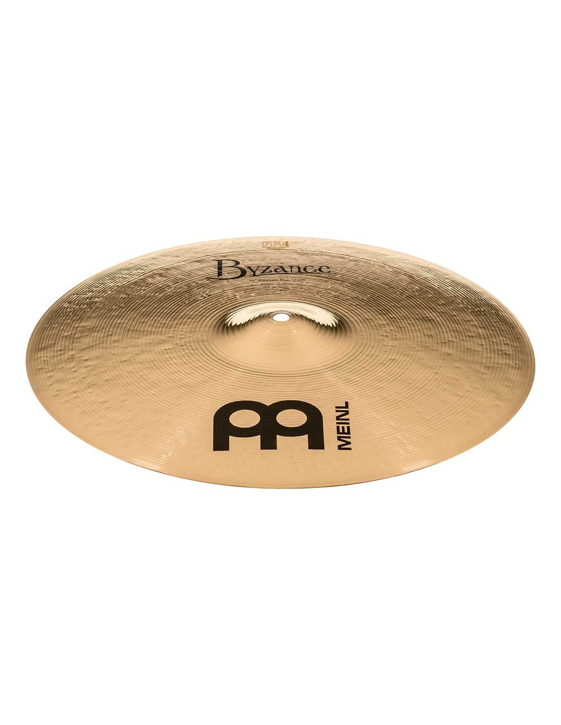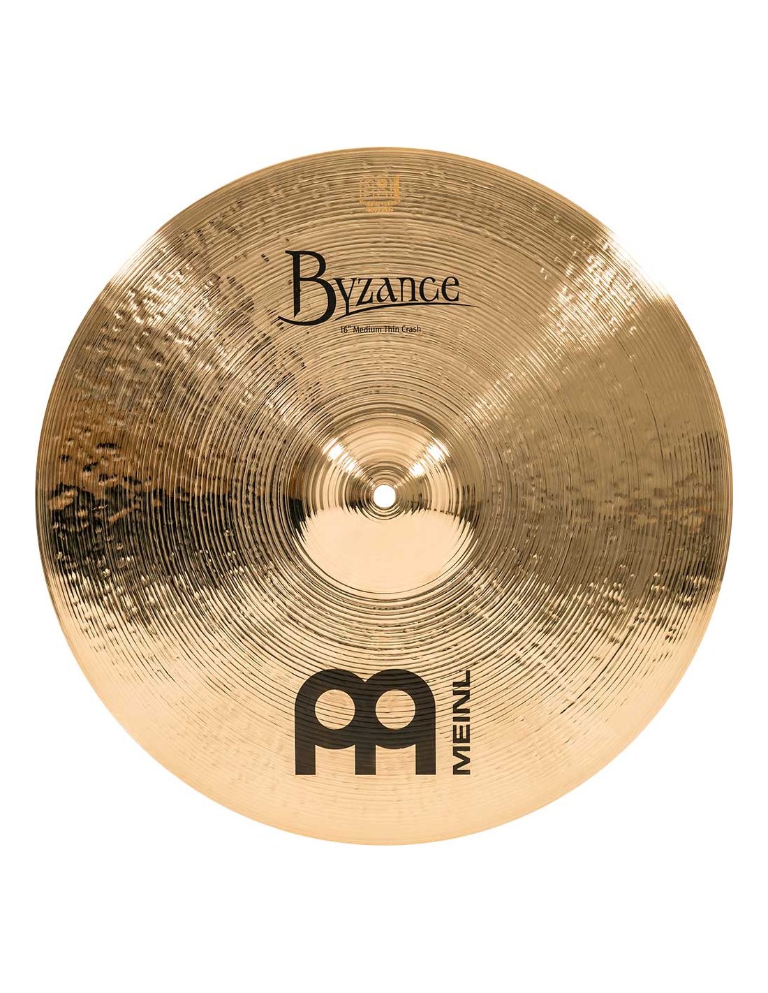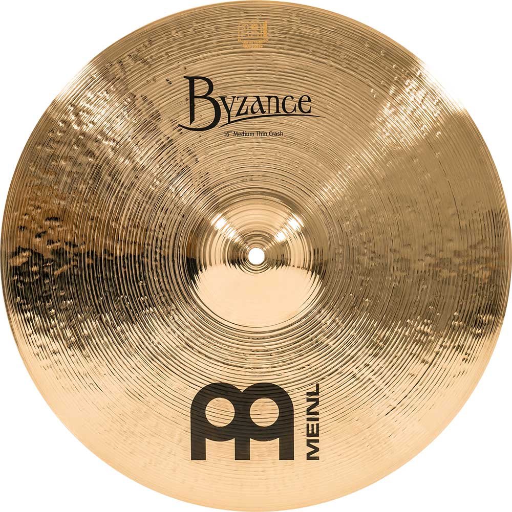 'Crash 16" Medium Thin, Byzance Brilliant Series. The Byzance Brilliant series plates are handcrafted in our factory in Turkey by specialists and respecting tradition throughout the process. All plates are made with B20 bronze alloy discs. Various techniques are involved in the process, both hammering and turning. In addition to this, they receive a glossy lacquer that gives them a more explosive sound and a spectacular glossy finish.