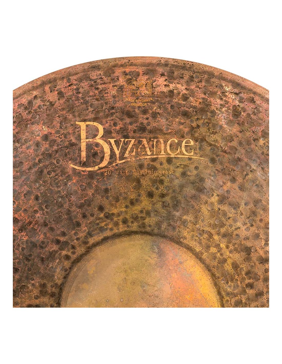 'Crash 20" Thin, Byzance Extra Dry Series. The plates of the Byzance Extra Dry series are handcrafted in our factory in Turkey by specialists and respecting tradition throughout the process. All plates are made with B20 bronze alloy discs. Several techniques are involved in the process, both hammering and turning. The unlathed top finish and the larger diameter hammered finish together with the fully lathed bottom of the plate make the series unique. With an explosive sound, a bit trashy and with little sustain. These plates have created a completely unique new sound universe.