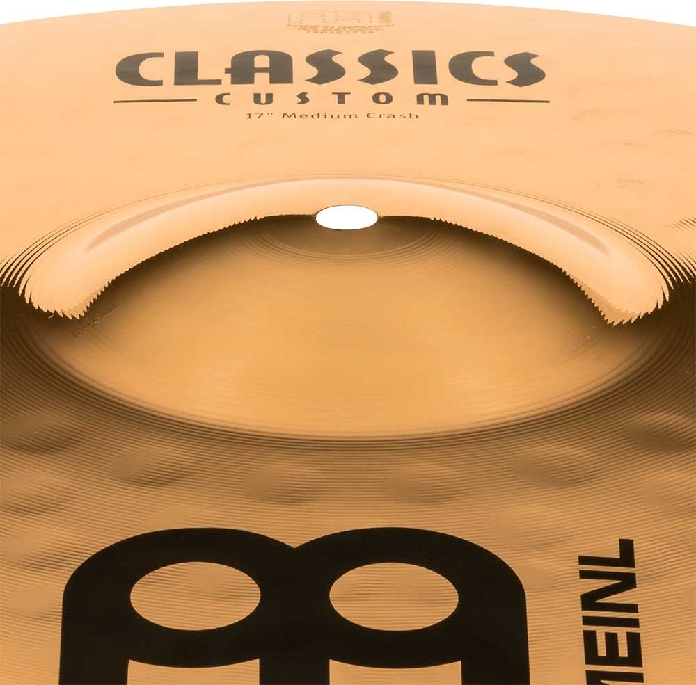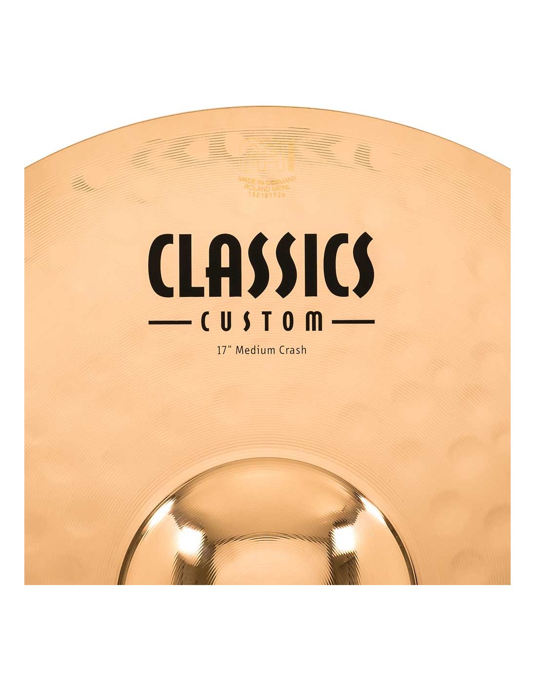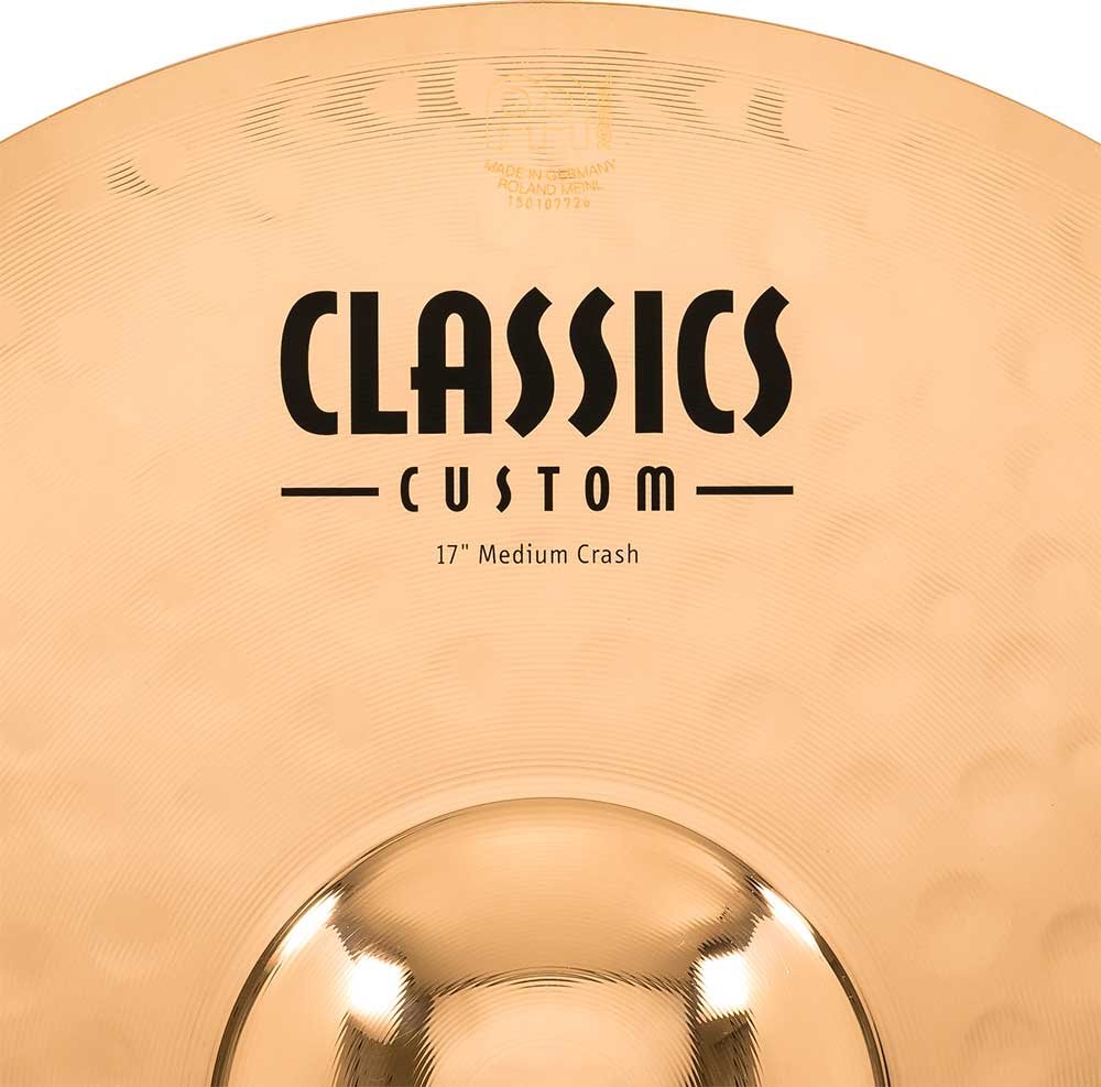 'Crash 17" Medium, Classics Custom Series. The Classics Custom series cymbals are mechanically produced in Germany with a B10 alloy. The process involves various techniques, both pressing and computerized hammering. In addition to this, they receive a glossy lacquer that gives them a spectacular glossy finish.