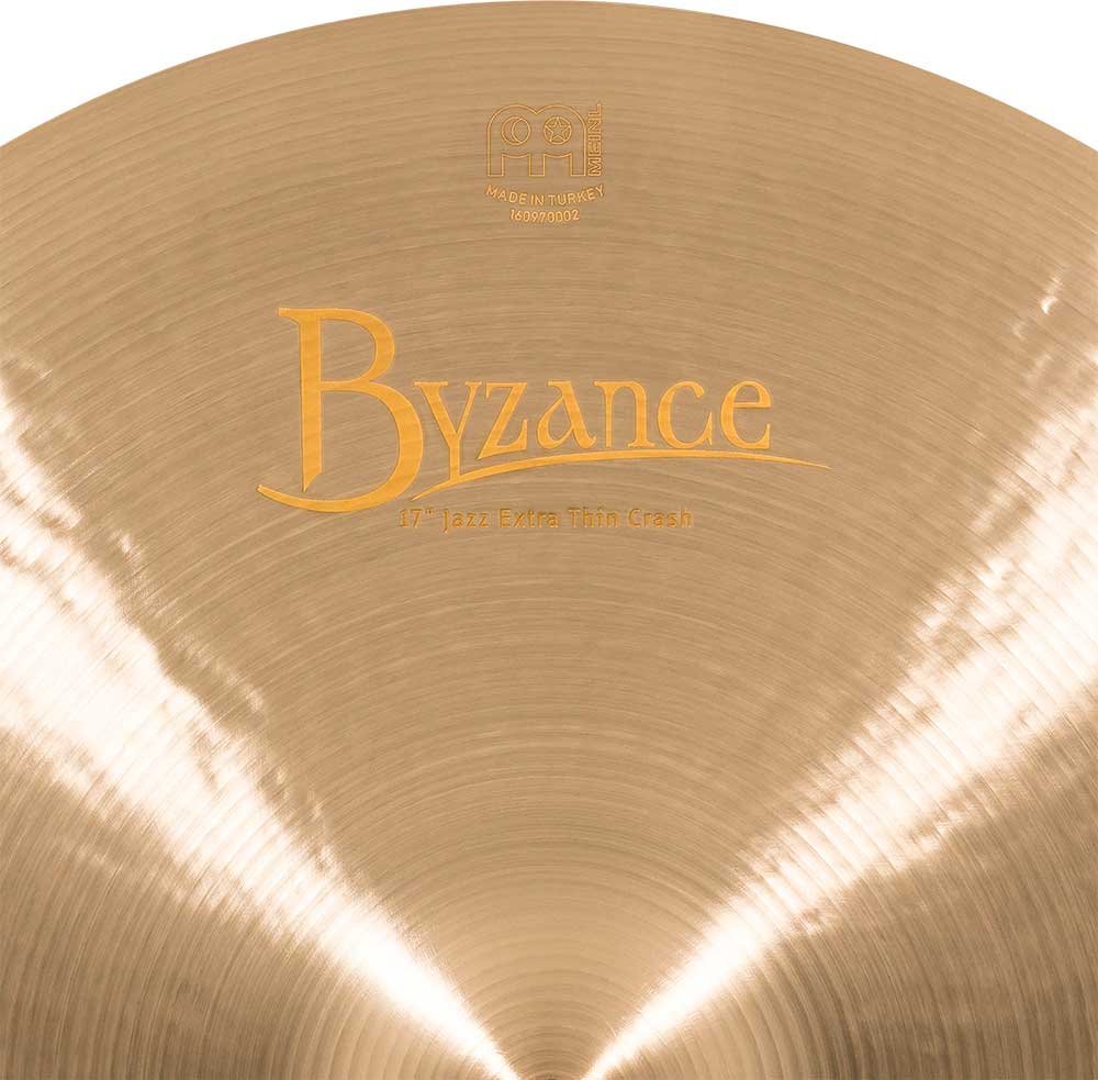 'Crash 17" Extra Thin, Byzance Jazz Series. The Byzance Jazz series plates are handcrafted in our factory in Turkey by specialists and respecting tradition throughout the process. All plates are made with B20 bronze alloy discs. Several techniques are involved in the process, both hammering and turning. The fine turning together with the massive hammering makes this series a sound cushion for any pop, jazz, fusion environment....