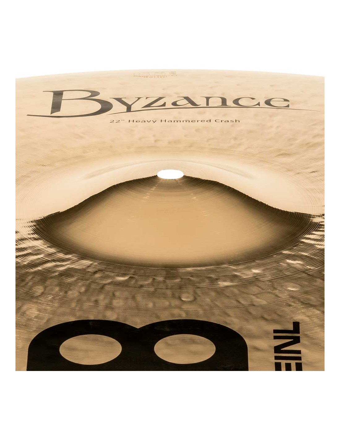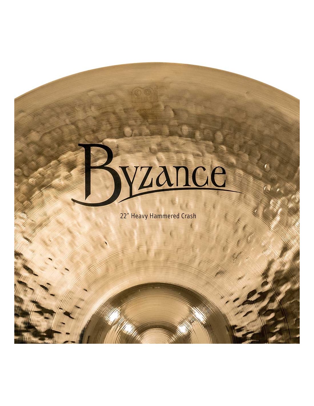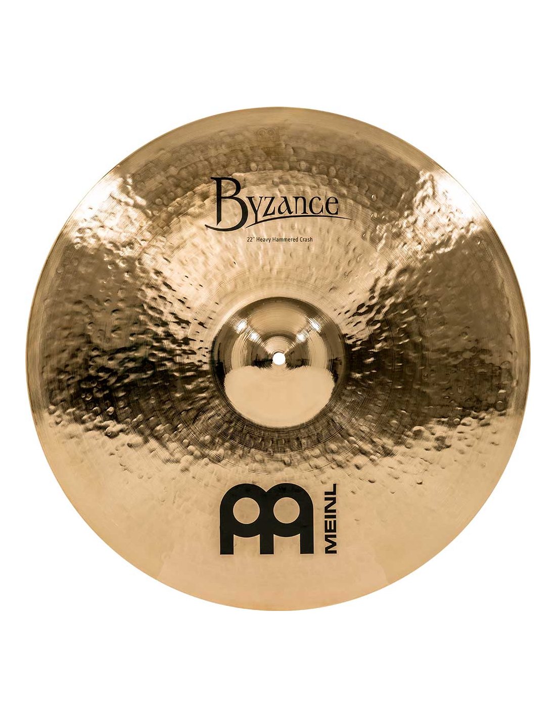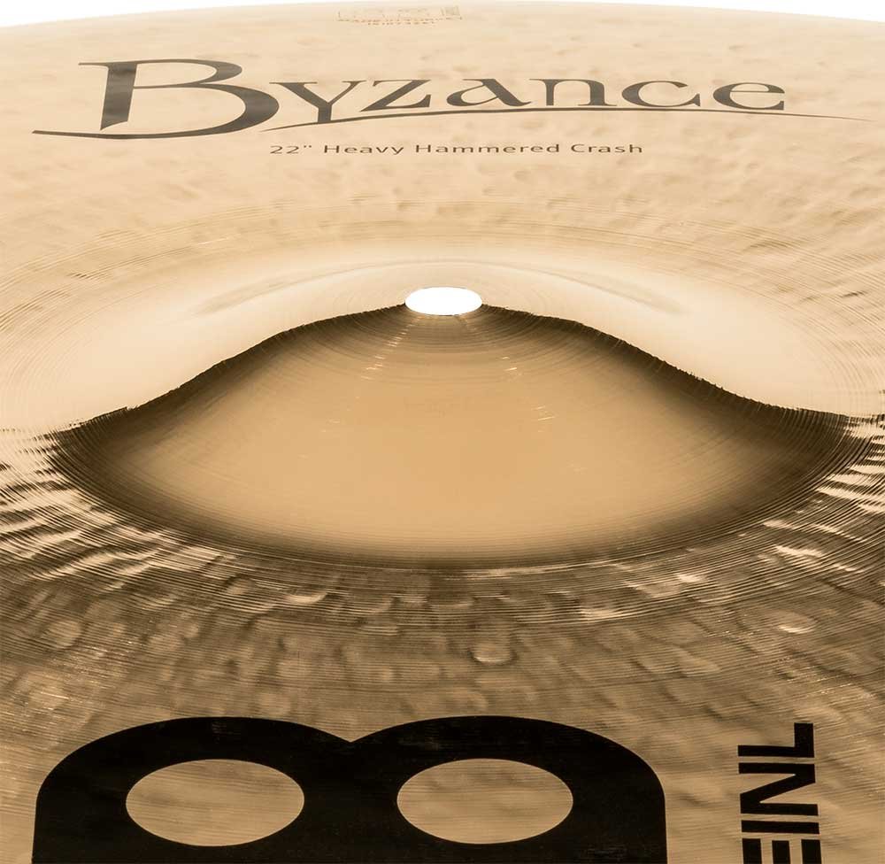 'Crash 20" Heavy Hammered, Byzance Brilliant Series. The Byzance Brilliant series plates are handcrafted in our factory in Turkey by the hands of specialists and respecting tradition throughout the process. All plates are made of B20 bronze alloy discs. Various techniques are involved in the process, both hammering and turning. In addition to this, they receive a glossy lacquer that gives them a more explosive sound and a spectacular glossy finish.