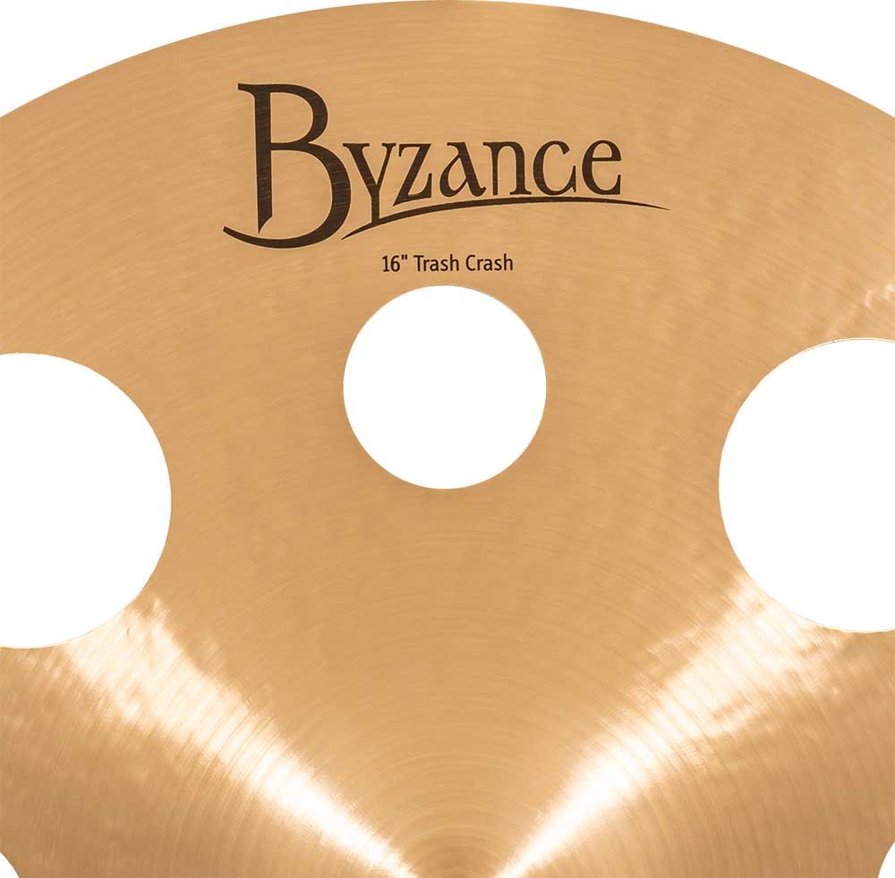 “'Trash Crash 16" Traditional Series. The plates of the Byzance Traditional series are handcrafted in our factory in Turkey by specialists and respecting tradition throughout the process. All plates are made of B20 bronze alloy discs. Various techniques are involved in the process, both hammering and turning. The traditional finish gives the series the classic Turkish cymbal sound we've been hearing for over a century.