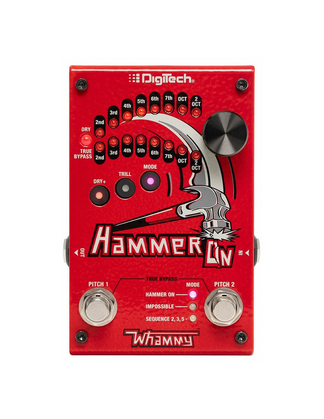 'Il nuovo HammerOn consente di effettuare salti di intonazione istantanei su un intervallo di 4 ottave, dando maggiore profondità e complessità a riff e progressioni di accordi.Come un'estensione naturale del manico della chitarra, ora puoi usare i piedi per fare ''hammer-on'' mentre suoni con le mani, realizzando frasi più veloci e tecniche che vanno oltre il raggio d'azione delle dita.Con due interruttori programmabili indipendenti, la modalità TRILL per esecuzioni rapide e DRY+ per aggiungere armonia, le possibilità sono infinite.