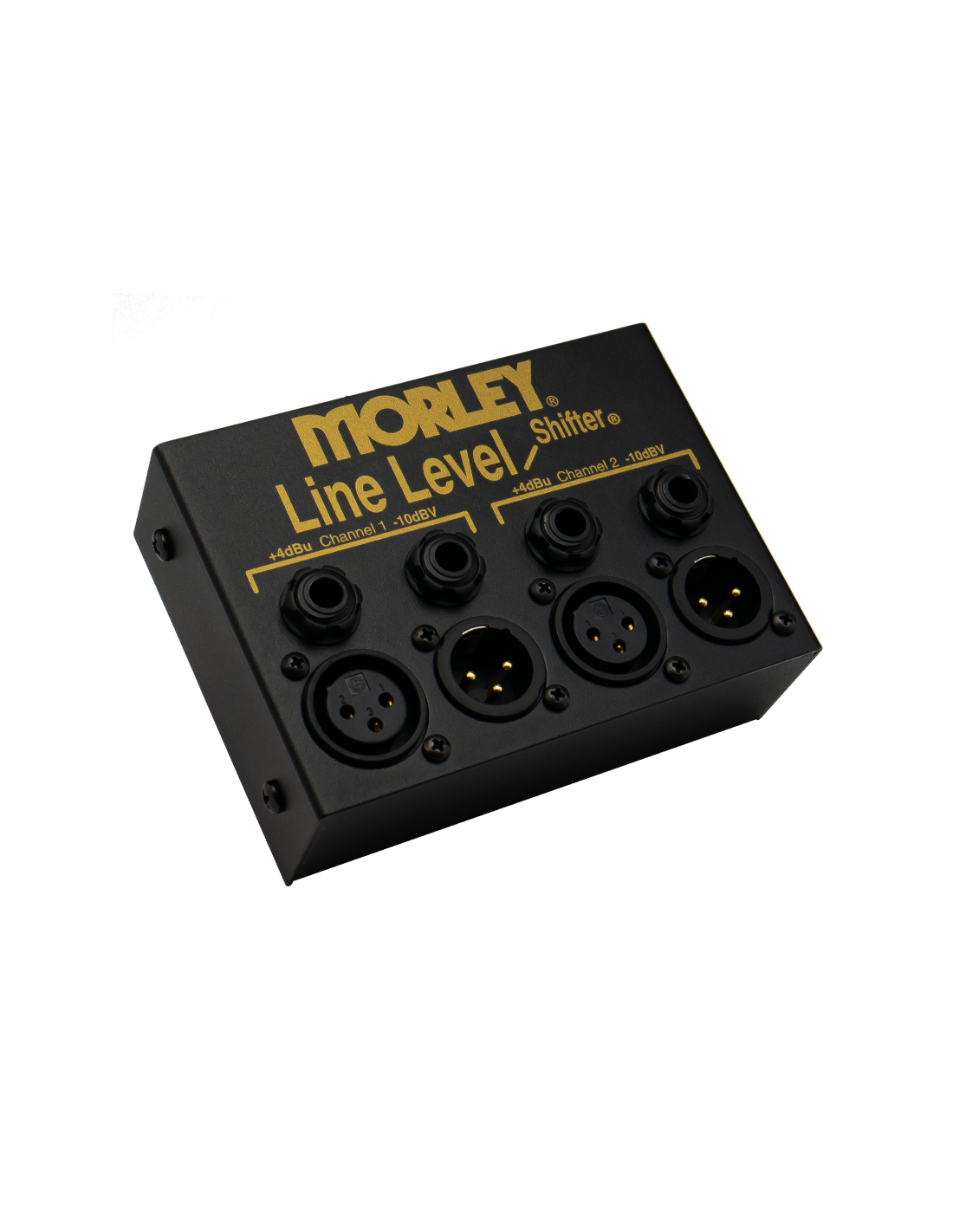 MORLEY MLLS LINE LEVEL SHIFTER is a line level adapter that converts signal voltage between -10dBu and +4dBV, eliminates hum, feedback and improves the quality of the audio source. Technical features include 2 separate channels with balanced and unbalanced TRS In/Out connectors and balanced XLR
