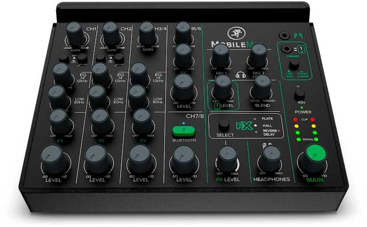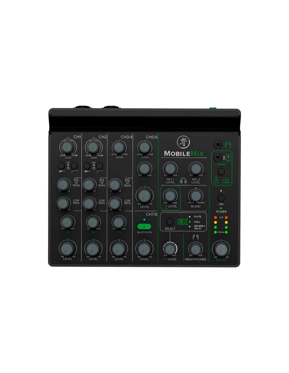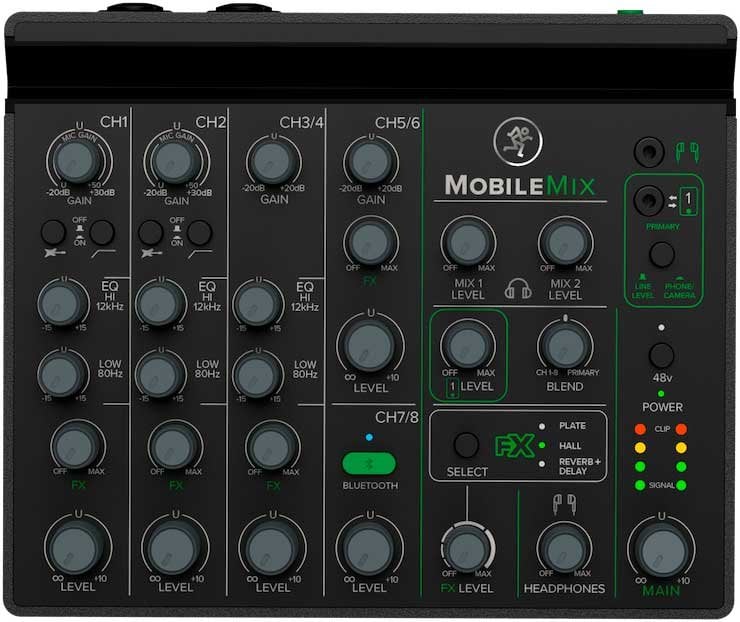 MobileMix is a complete, small-sized audio mixer that introduces the legendary Mackie sound to DSLR cameras, PA systems, and smartphone streaming setups.