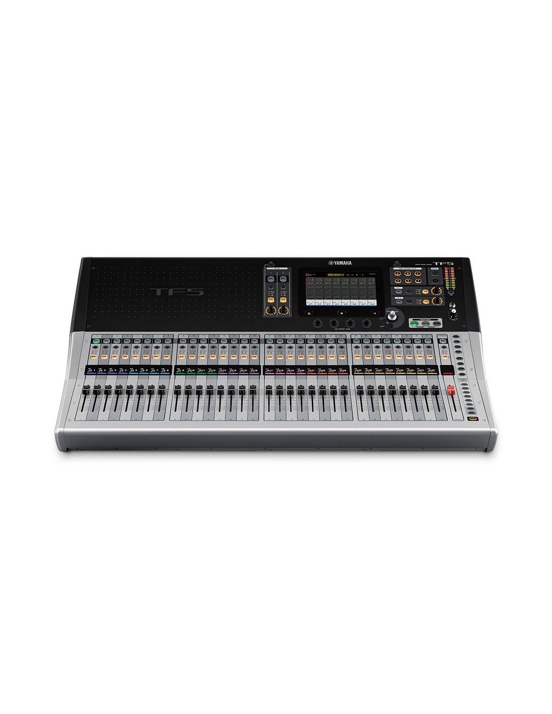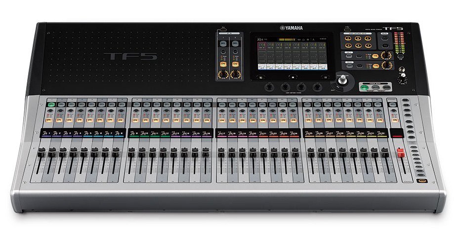 The Yamaha TF5 is a digital mixer equipped with 48 input channels (40 mono + 2 stereo + 2 return), 20 AUX, 32 analog mic/line XLR/TRS combo inputs, 2 analog stereo RCA inputs, 16 analog XLR outputs, 2 memory banks and an expansion slot for the NY64-D audio interface card; however, the key feature of the TF1 is the TouchFlo technology, which allows the musician the greatest possible convenience.