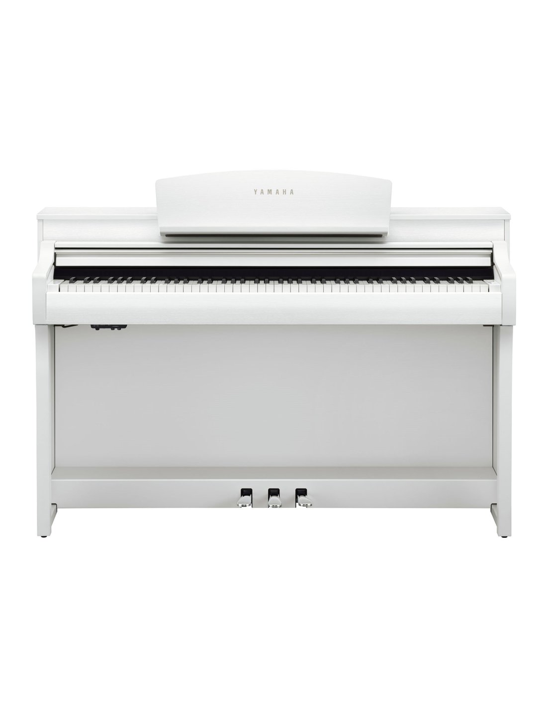 YAMAHA CSP255WH is a vertical digital piano from the Clavinova CSP-200 series that offers a combination of high-quality sounds, advanced mechanics and innovative technologies that make it a versatile and complete digital piano. Technical features include 88-key GrandTouch-S synthetic keyboard, PureSound binaural sound engine with binaural sampling technology that captures sound from two microphone positions, which includes 2 new Yamaha CFX and Bösendorfer Imperial piano samples, Virtual Resonance Modeling (VRM) that simulates the natural resonance of an acoustic piano, Grand Expression Modeling that models the expressive behavior of an acoustic grand piano, CSP functions that include track shows classics, automatic accompaniment, exercises and lessons, digital scores, GP Response Damper Pedal, 256-note polyphony, 772 Voices + 47 Drum/SFX Kits, 495 styles, Reverb, Chorus, Tremolo, DSP effects. The structure is made of satin mahogany wood with a white finish and 3 GrandTouch pedals. It also has Bluetooth, USB and MIDI connectivity, an integrated amplifier system with 2 Speakers of 40W each and an audio recording/reproduction system
