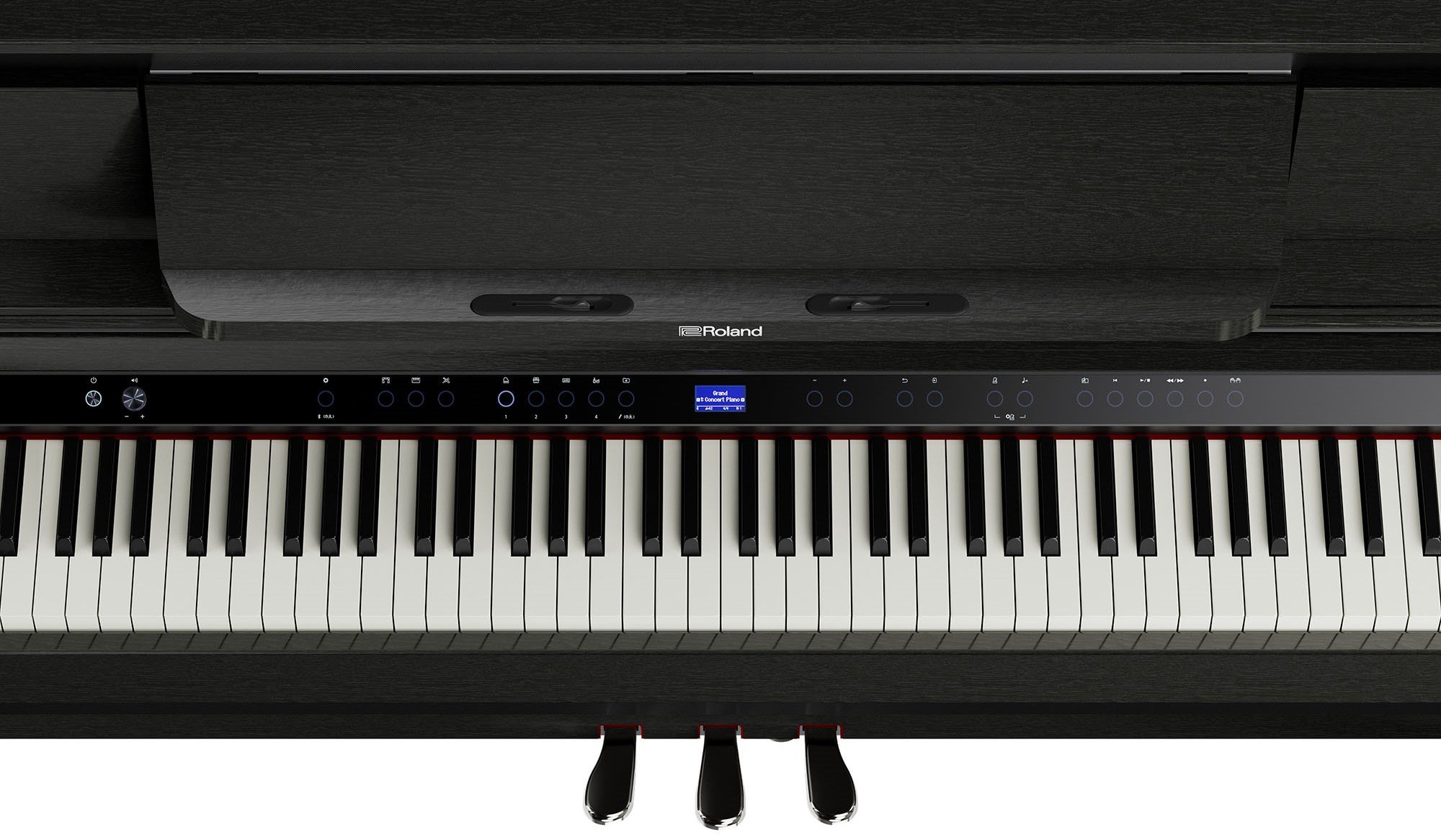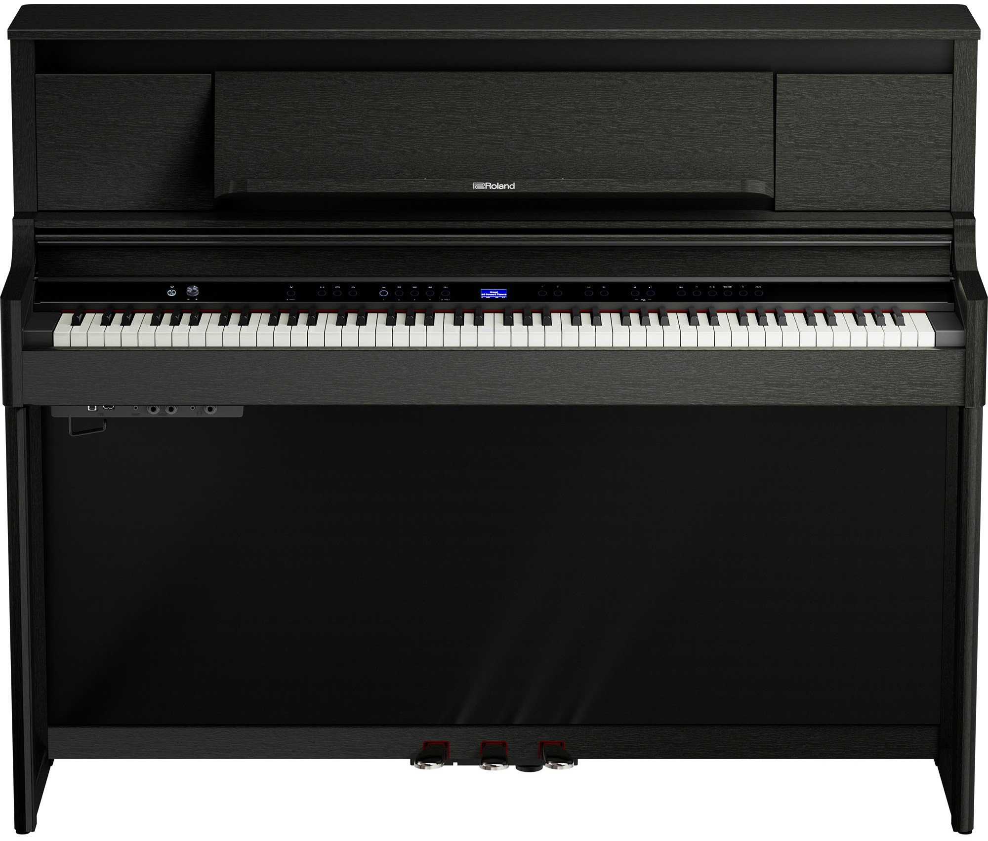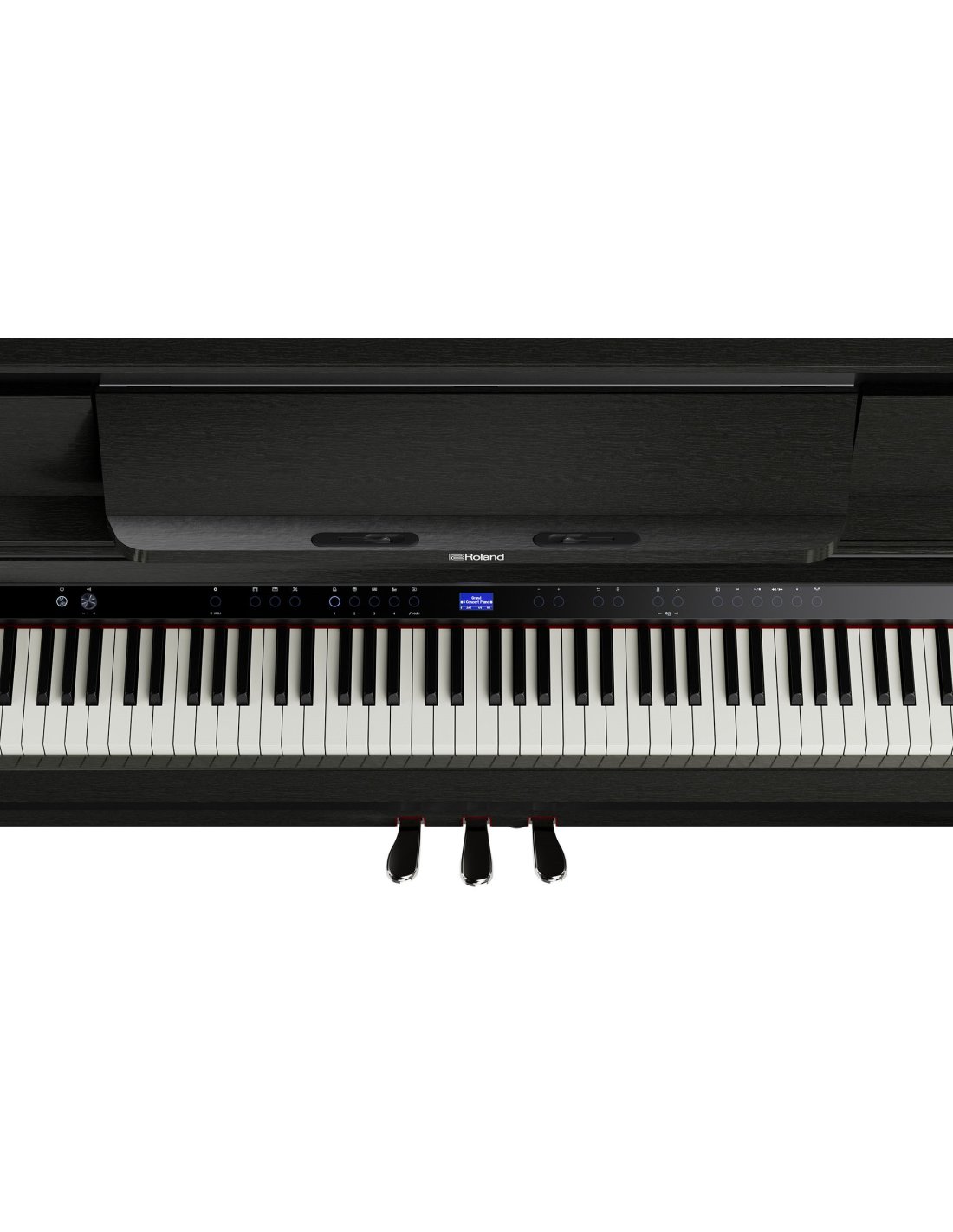ROLAND LX6-CH CHARCOAL BLACK is a digital piano with 88 weighted keys, hammer action via Hybrid Grand keyboard, pressure point simulation using Ivory Touch technology, 324 integrated sounds, transposer, Split, Twin Piano, 394 internal tracks, integrated effects, Piano Reality Modeling sound engine, High Precision Sensing technology for an ultra-detailed touch response. It also features recording and playback via MIDI and audio files (mp3 and wav), Bluetooth 5.0 connectivity, stereo output through 2 6.3 mm TRS L/R, MIDI, USB jack connections, 2 headphone outputs via 3.5 mm jack, integrated 3-way pedals (damper, piano, support), integrated speakers (1x 33 W, 2x 24 W, 2x 21 W). Includes Roland Piano Masterpieces app, cable power supply and headphone hook