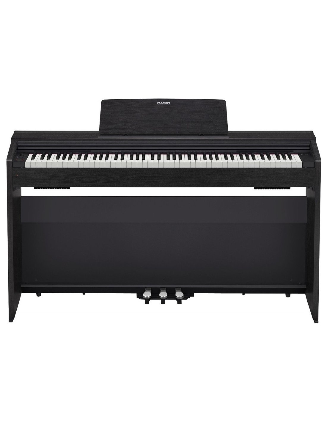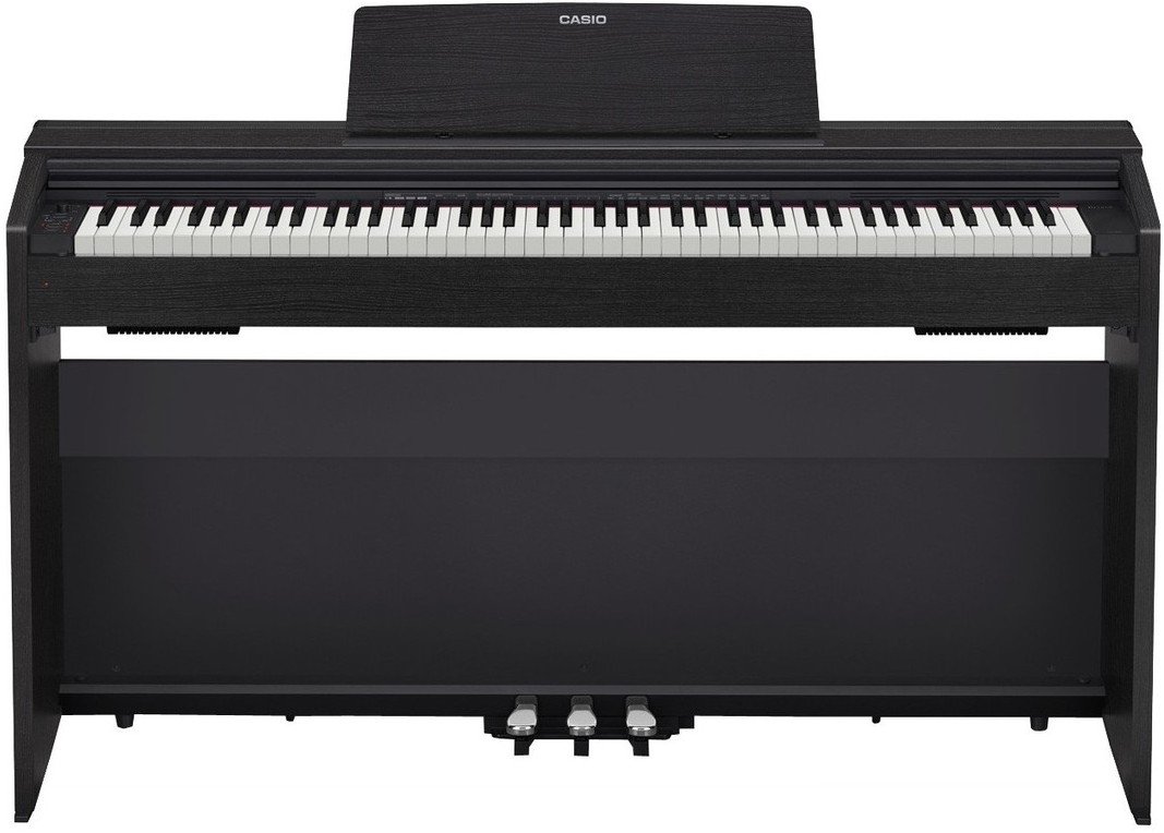 The PX-770 BK is a Casio digital piano in black color, with 88 weighted keys. It is equipped with a scaled hammer mechanism with three sensors and a key cover that recalls those of real ebony and ivory grand pianos