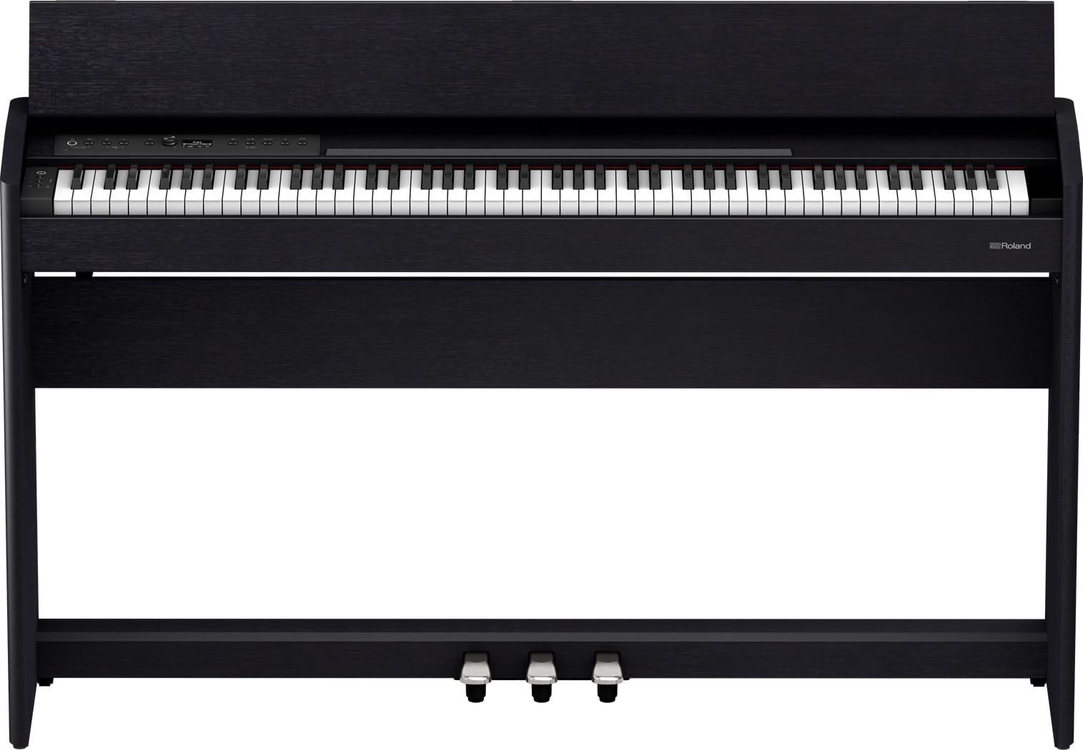 The F-701 CB is a Roland digital piano in black color, with 88 weighted keys. It features Roland SuperNATURAL Piano technology, which offers rich expressiveness with a realistic touch response like an acoustic